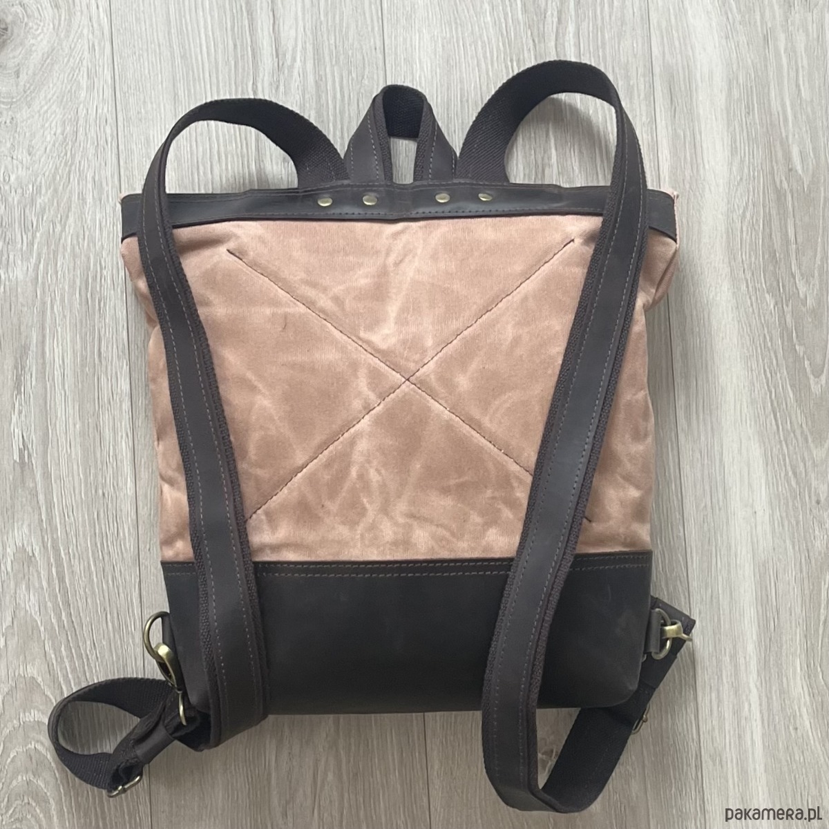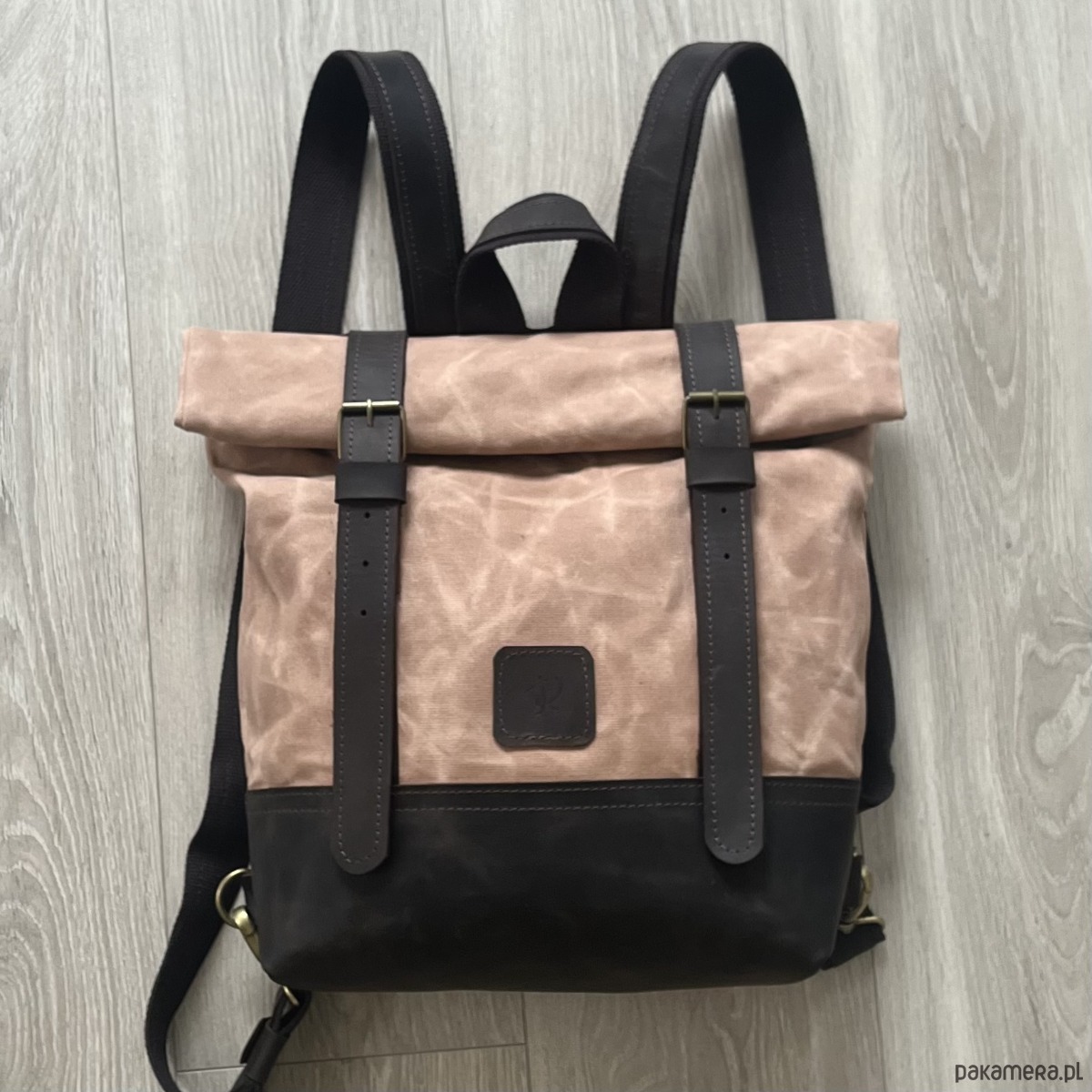 Różowy plecak z bawełny woskowanej i skóry Crazy Horse - unikat z duszą.