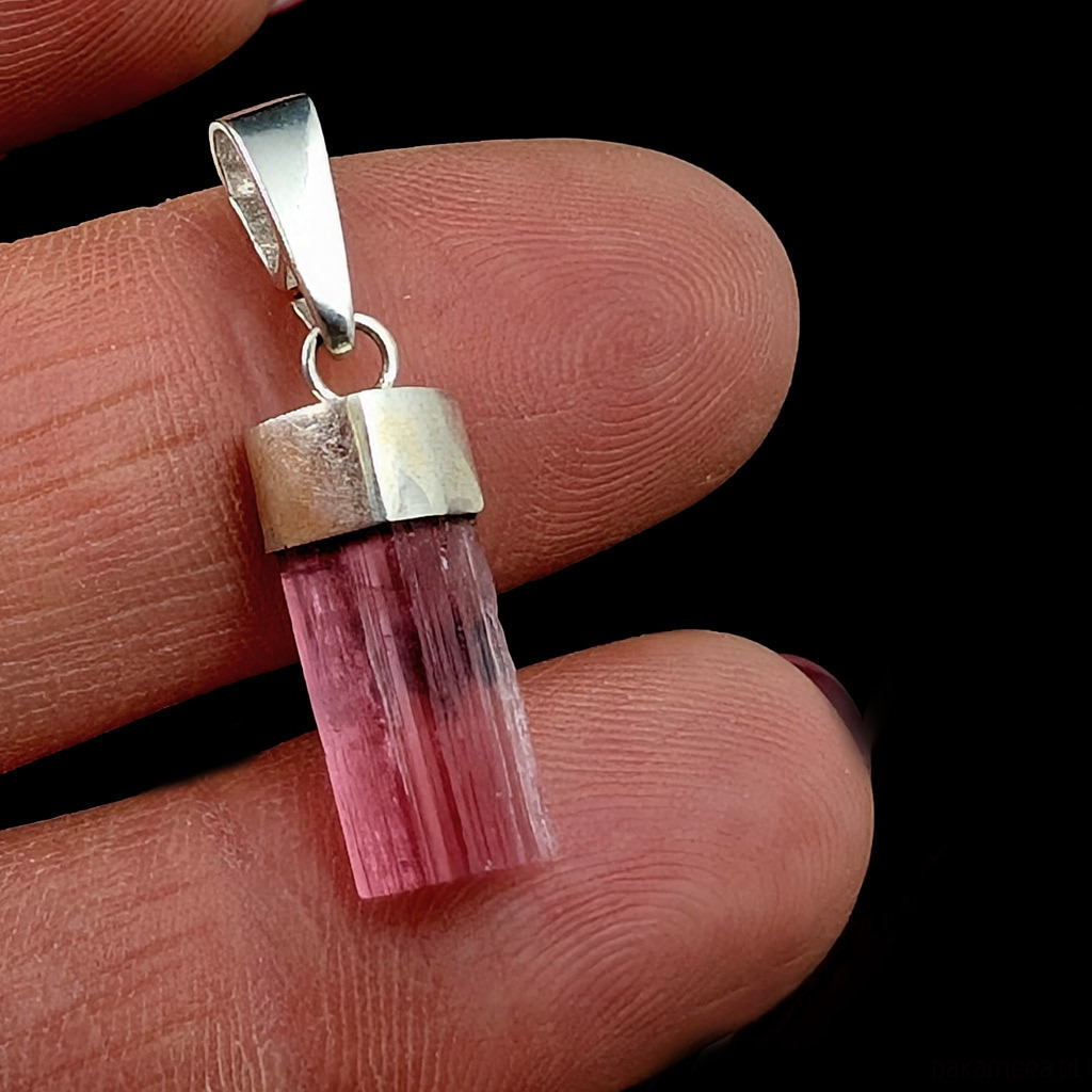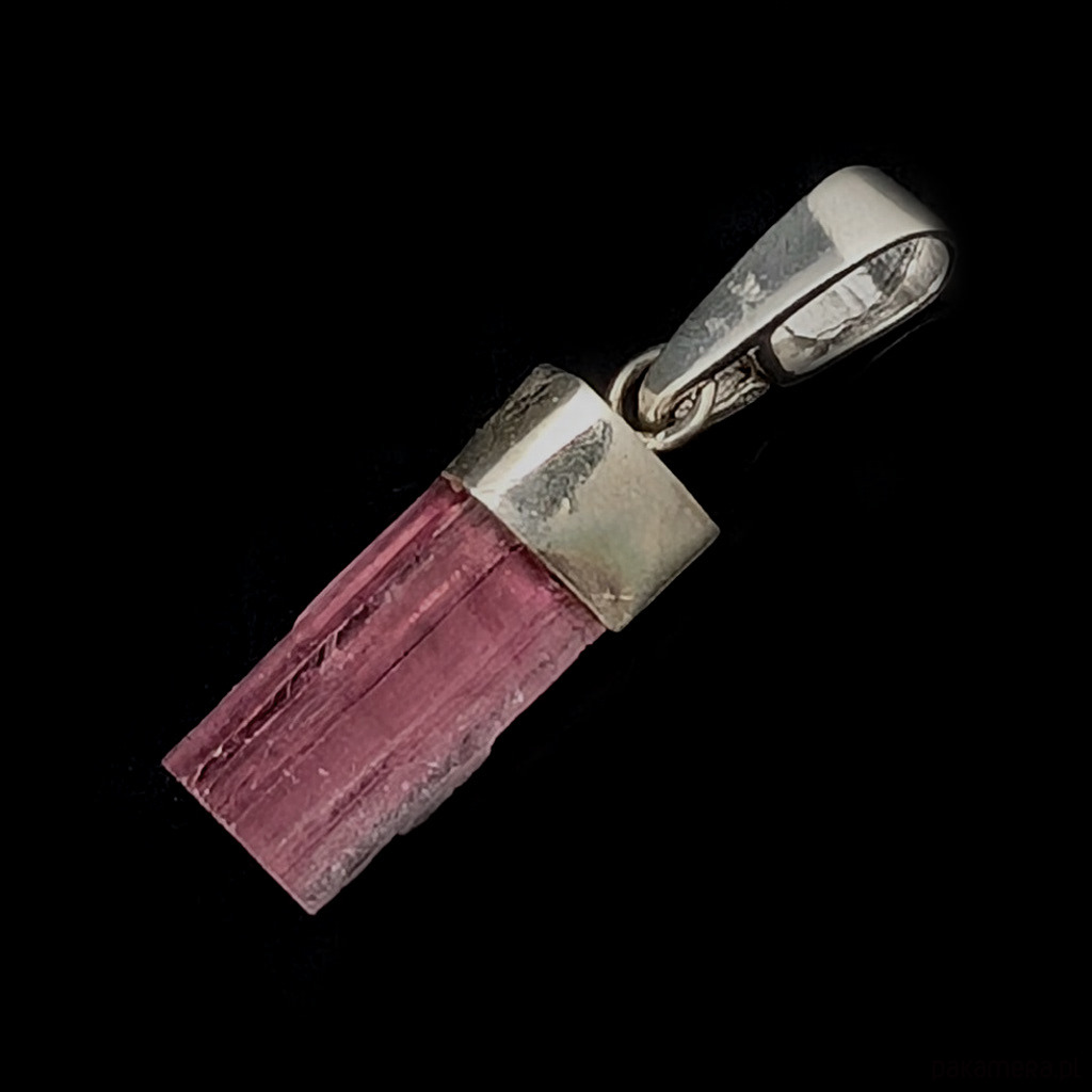 Mineralny wisior wykonany ze srebra pr 925 i pięknego turmalinu w różowym odcieniu. Wymiary oprawy 15 x 7 mm z krawatką 22 mm. Waga 1,5 g. Wisiorek zapakowany w ozdobne pudełeczko.