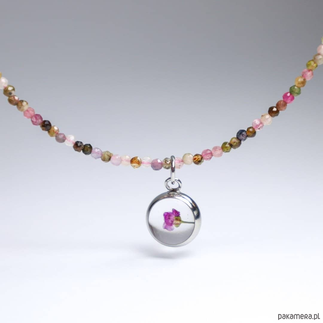 Dodaj odrobinę magii do swojego dnia z naszym naszyjnikiem z różowym Turmalinem i zawieszką z kwiatem Niezapominajki! ??