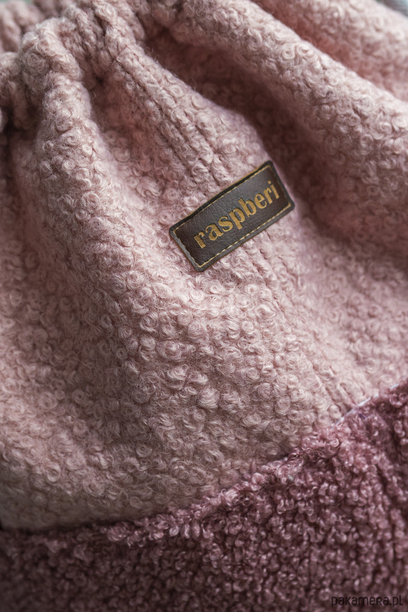 Workoplecak z różowej bukli.