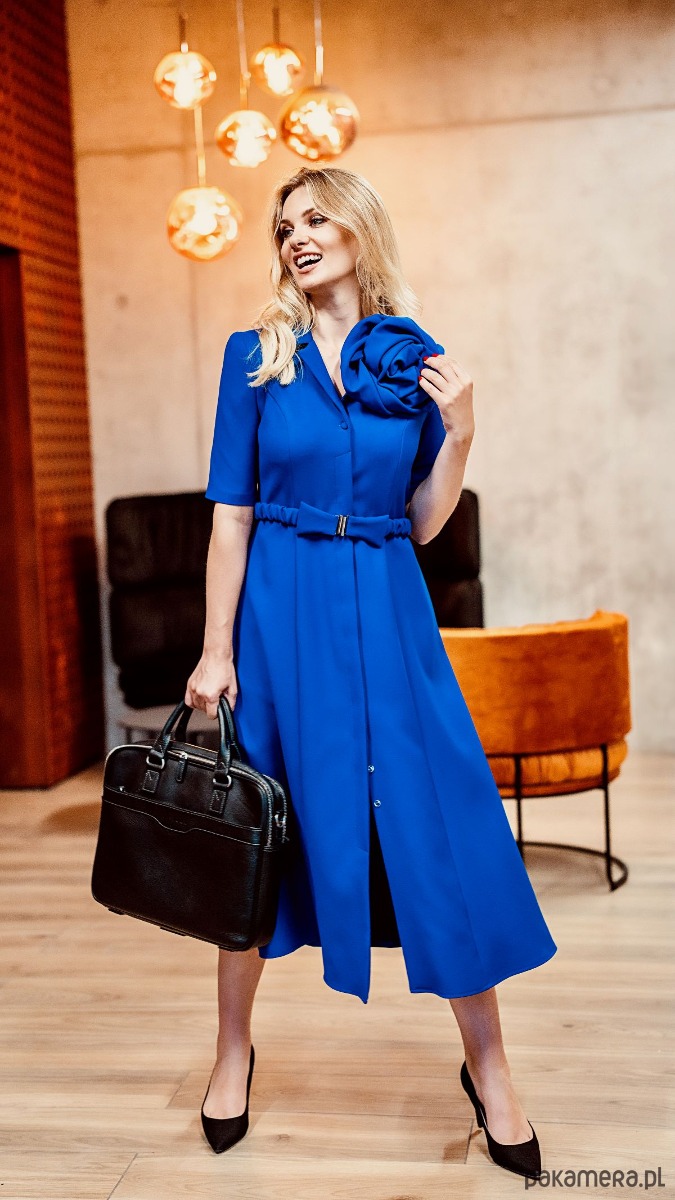 Gęsto doszyte guziki sprawią, że nawet u Pań z większym biustem, przód sukienki nie będzie się rozchodził