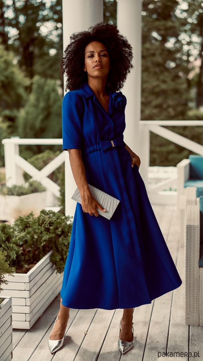 Ukryte pod przednią plisą guziki nie narzucają stylu, przez co sukienka będzie dobrą bazą pod stylizacje na różne okazje