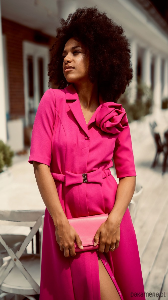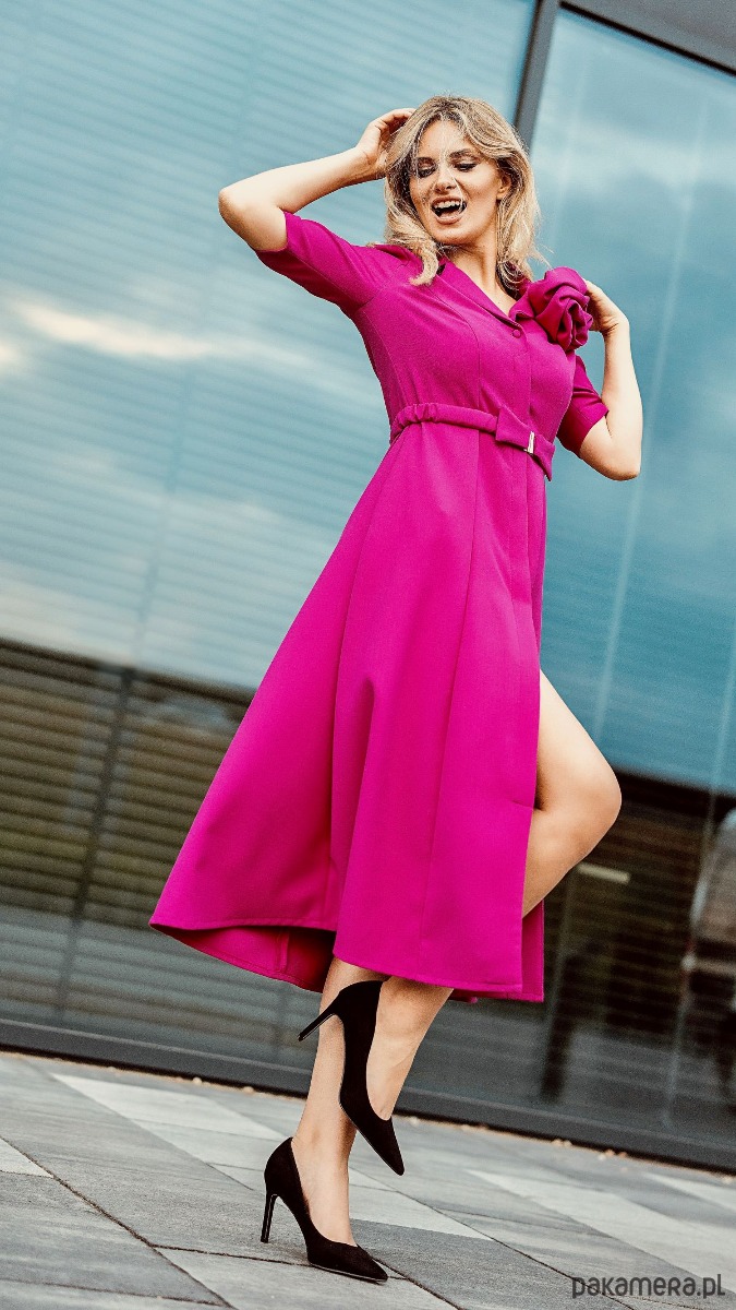 Ukryte pod przednią plisą guziki nie narzucają stylu, przez co sukienka będzie dobrą bazą pod stylizacje na różne okazje