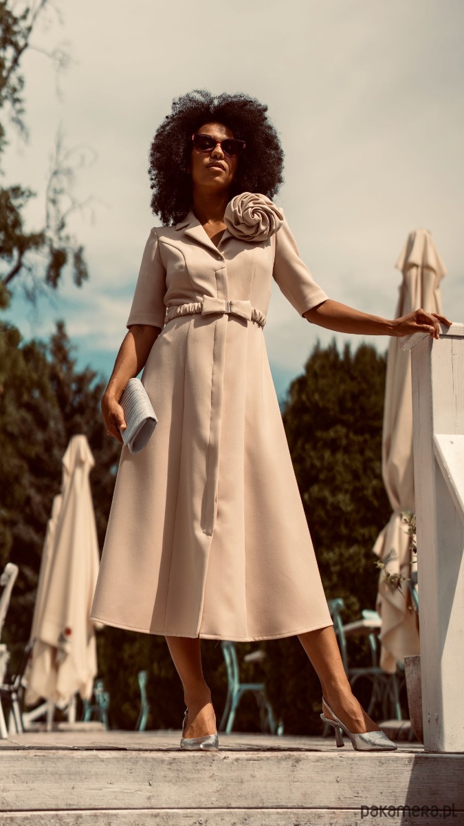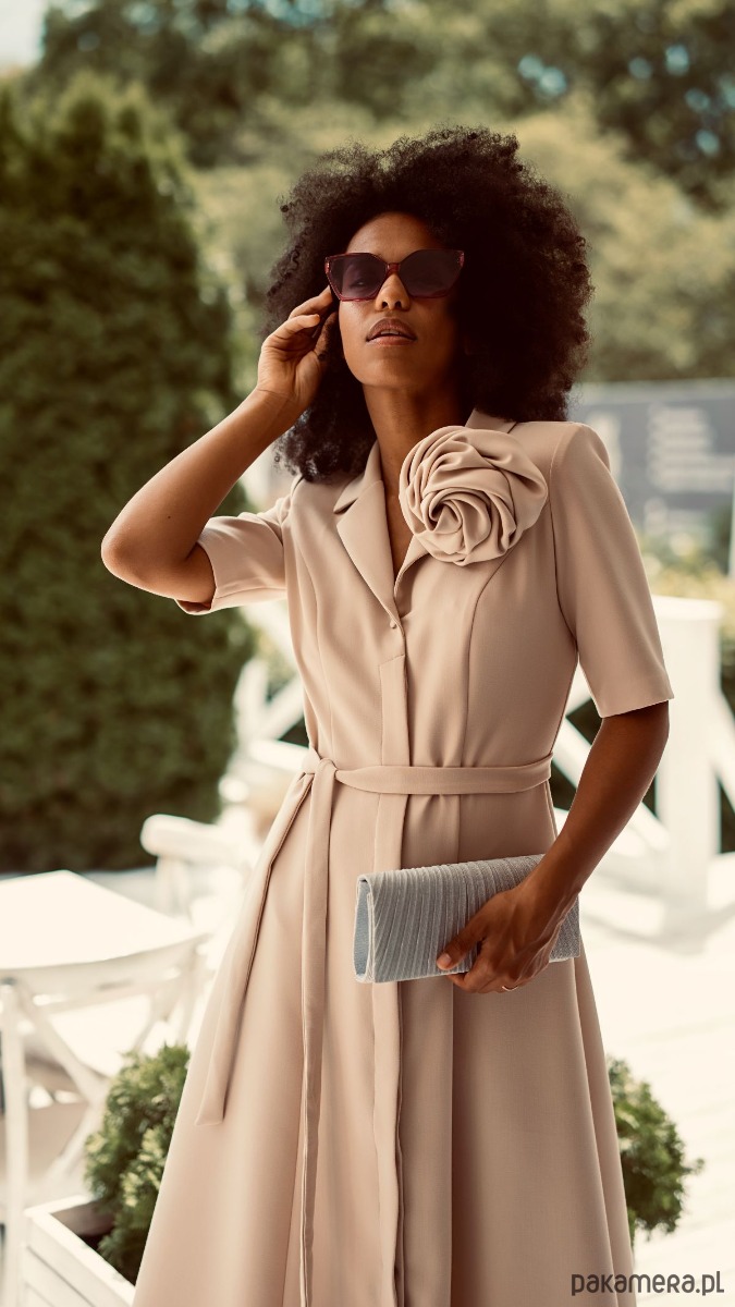 Ukryte pod przednią plisą guziki nie narzucają stylu, przez co sukienka będzie dobrą bazą pod stylizacje na różne okazje