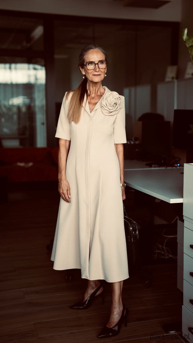 Gęsto doszyte guziki sprawią, że nawet u Pań z większym biustem, przód sukienki nie będzie się rozchodził