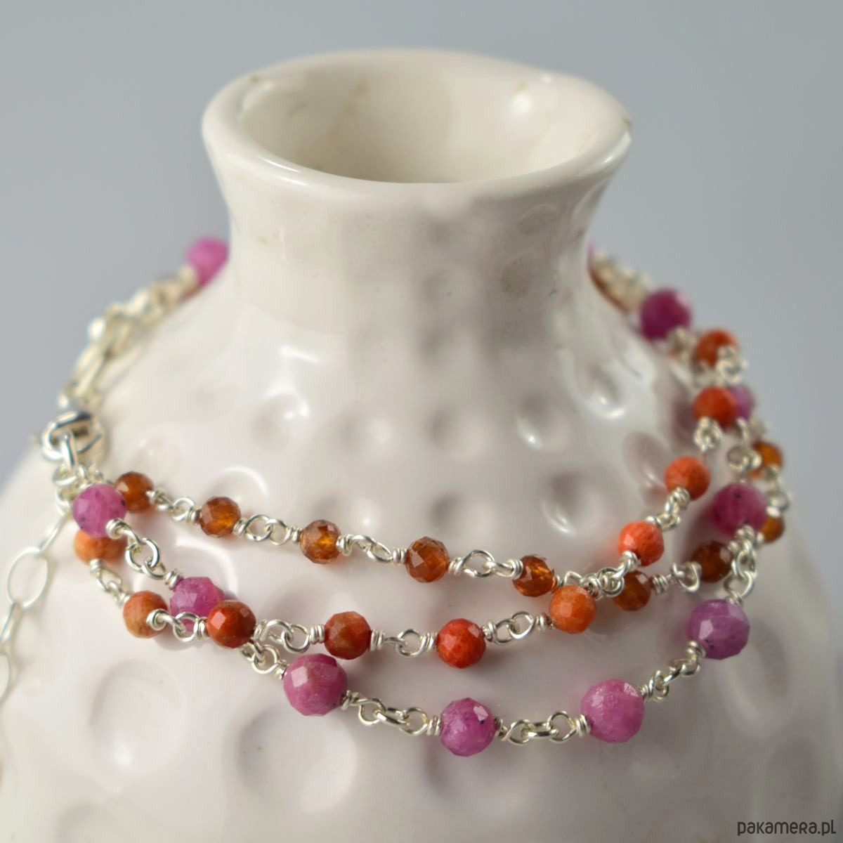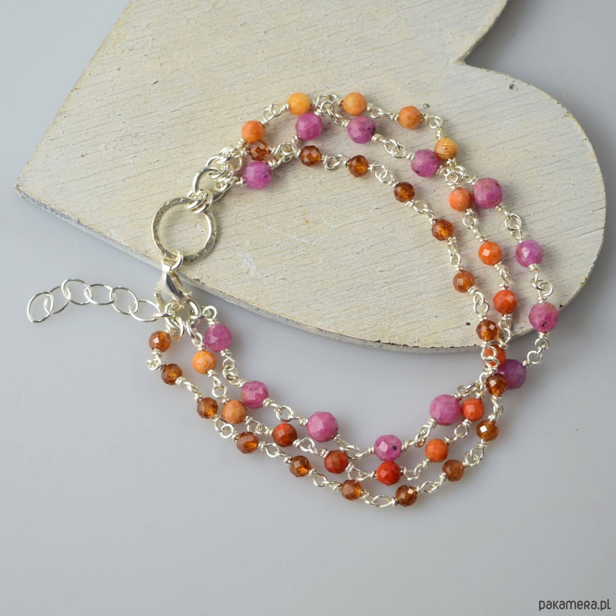 Rubin, koral i granat - srebrna bransoletka