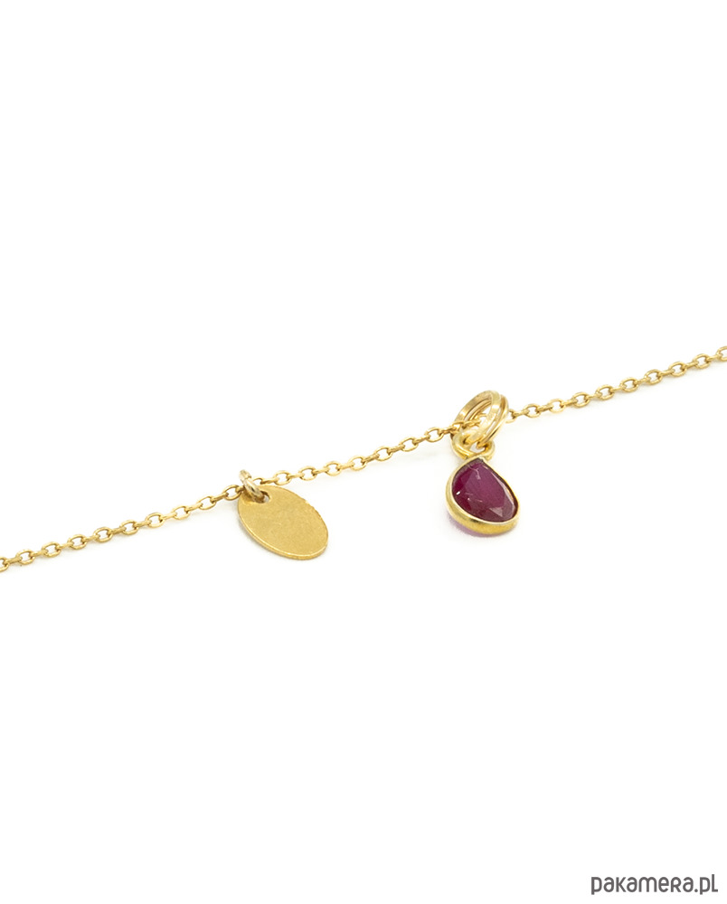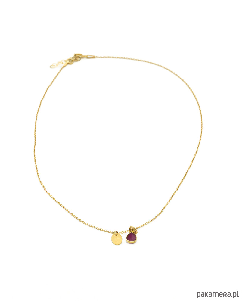 Delikatny naszyjnik, łańcuszek z przywieszonym rubinem naturalnym w kształcie łezki. Całość wykonana w srebrze 925, złocone 24 k złotem.