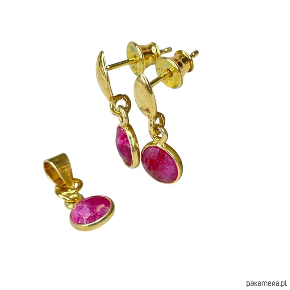 Rubinowy komplet ze złoconego srebra