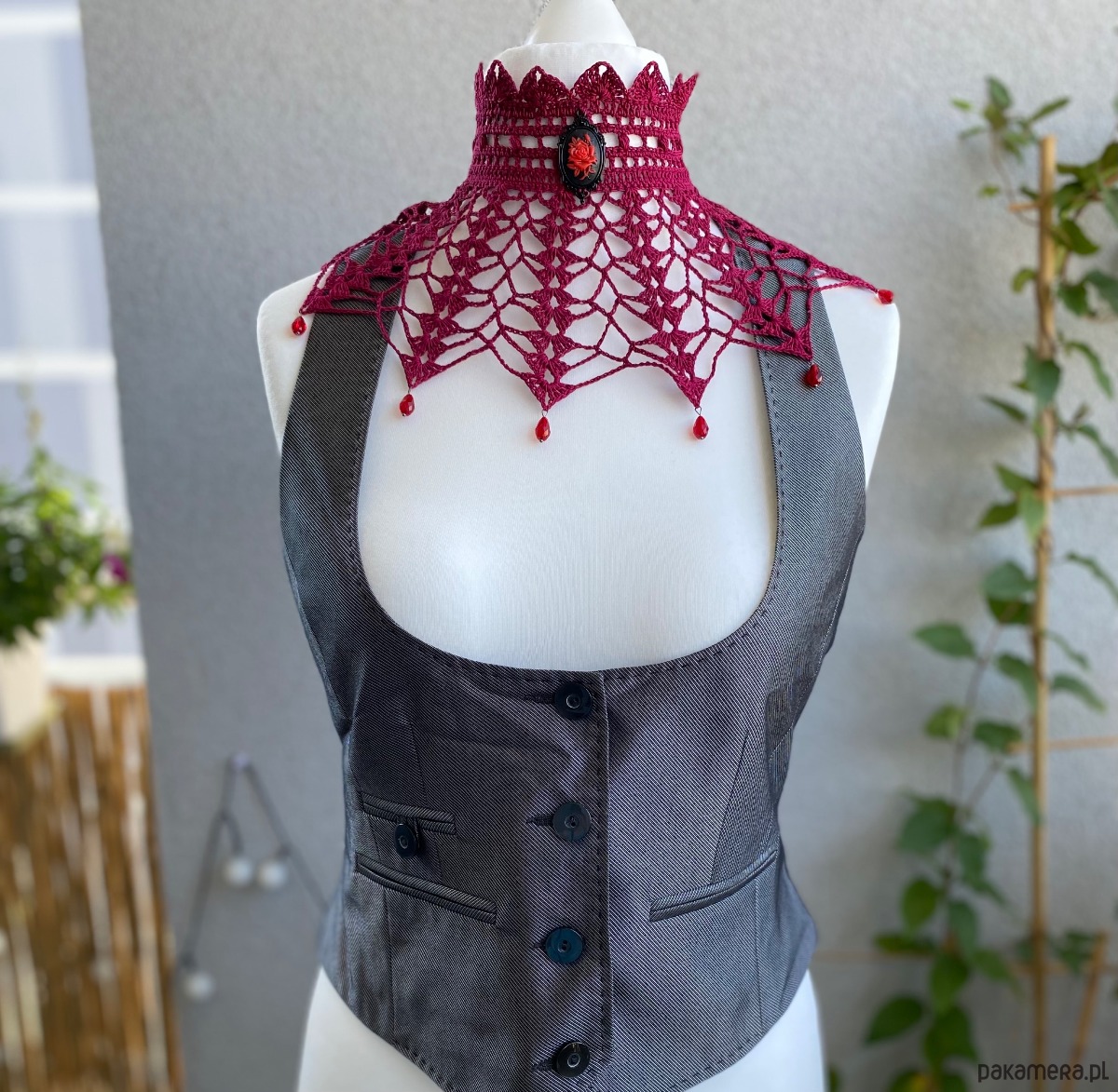 Rubinowy koronkowy naszyjnik gotycki vintage wiktoriańska kolia