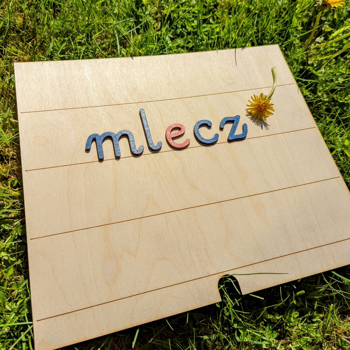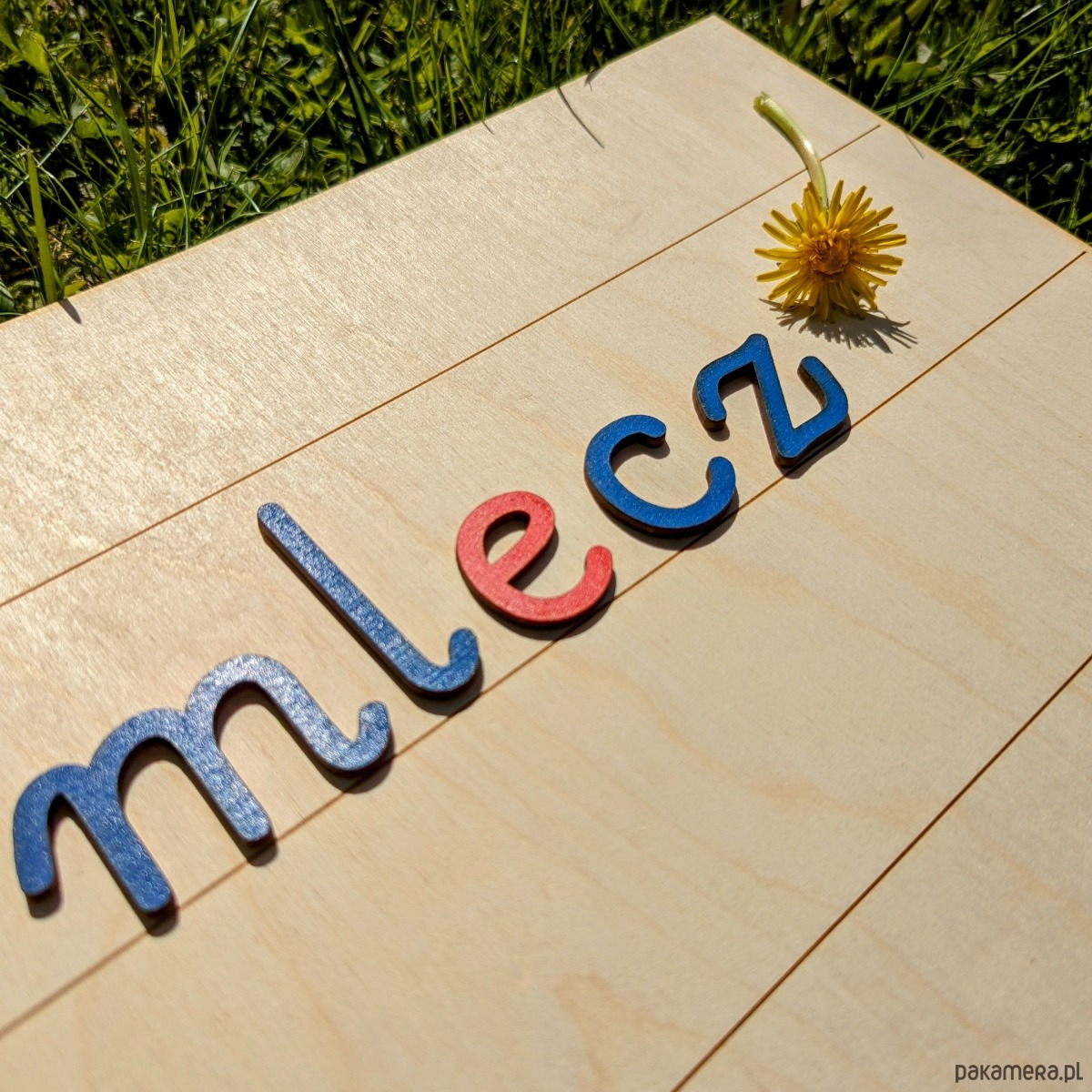 Literki wykonane są z drewna brzozowego (sklejki brzozowej). Malowane atestowaną farbą przeznaczoną do malowania zabawek dziecięcych.