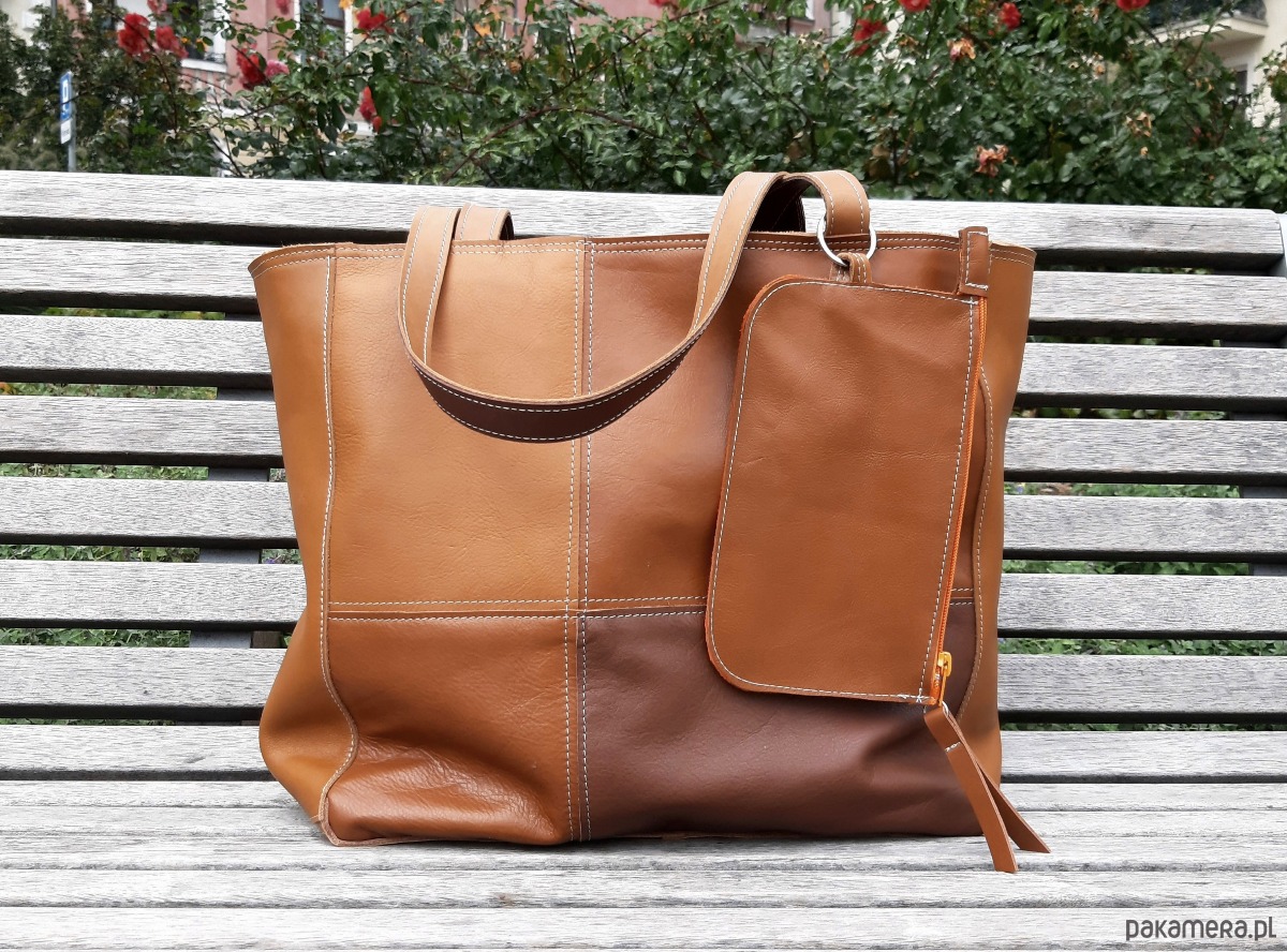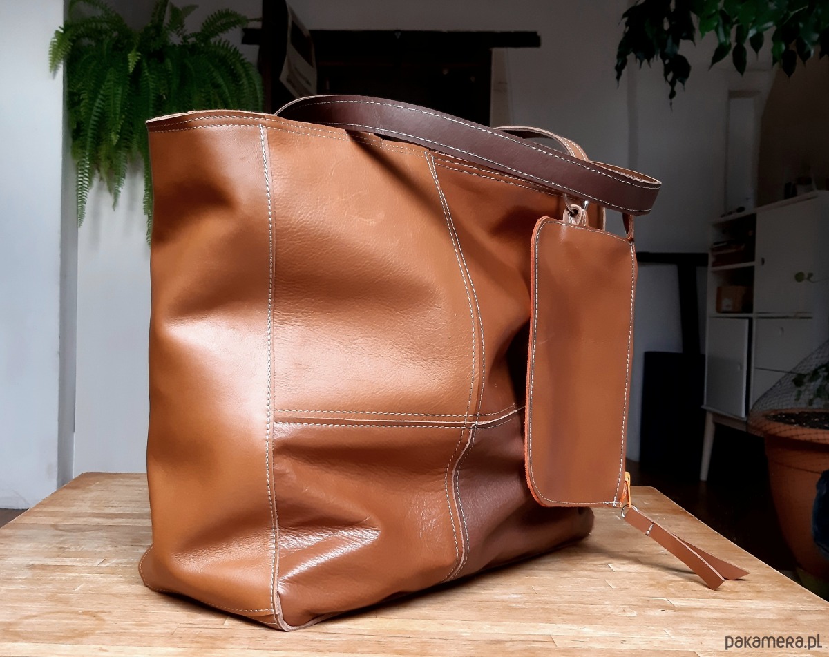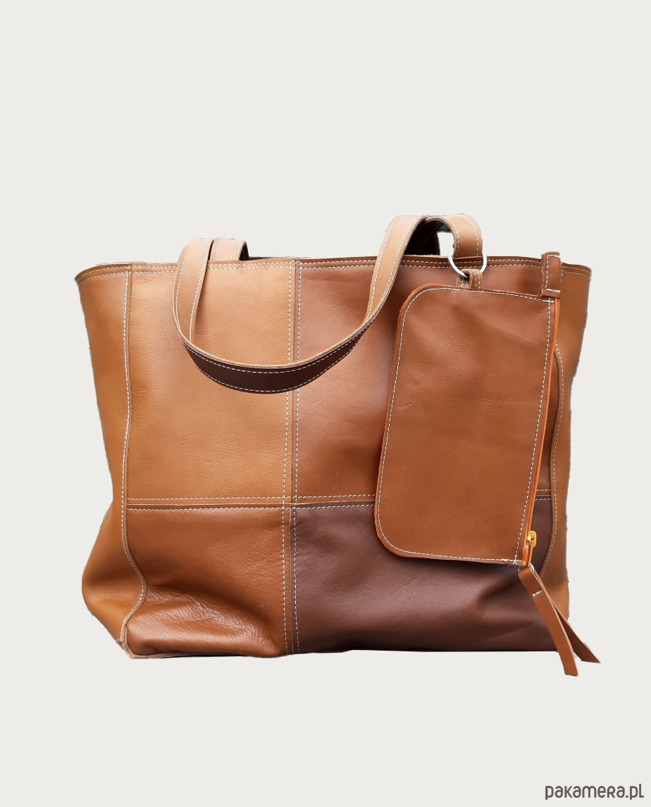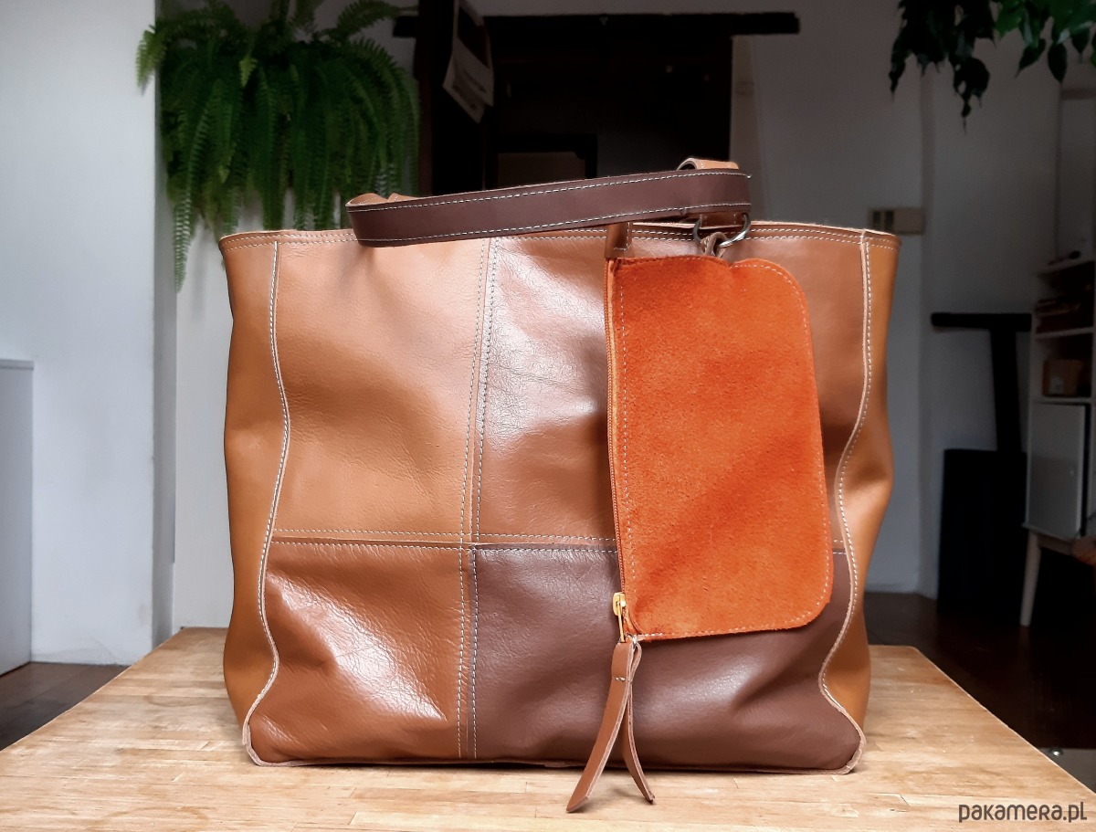 Przepiękna torba wykonana z wysokiej jakości naturalnej skóry w odcieniach koniaku i brązu. Miękka, lekka i niezwykle poręczna – idealna do codziennego użytku. Skóra wyróżnia się doskonałym gatunkiem i subtelną, naturalną fakturą.