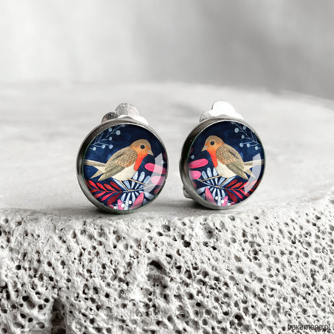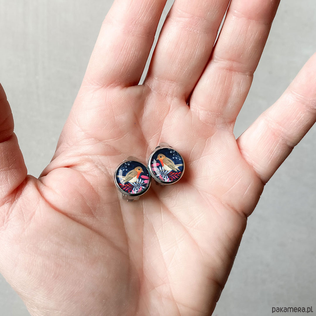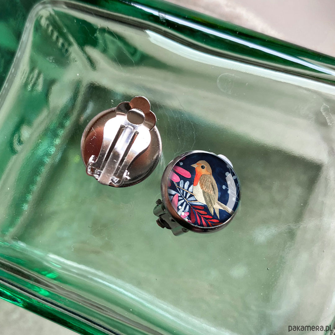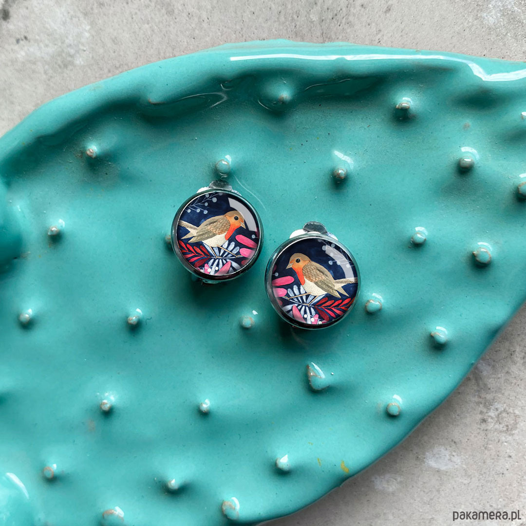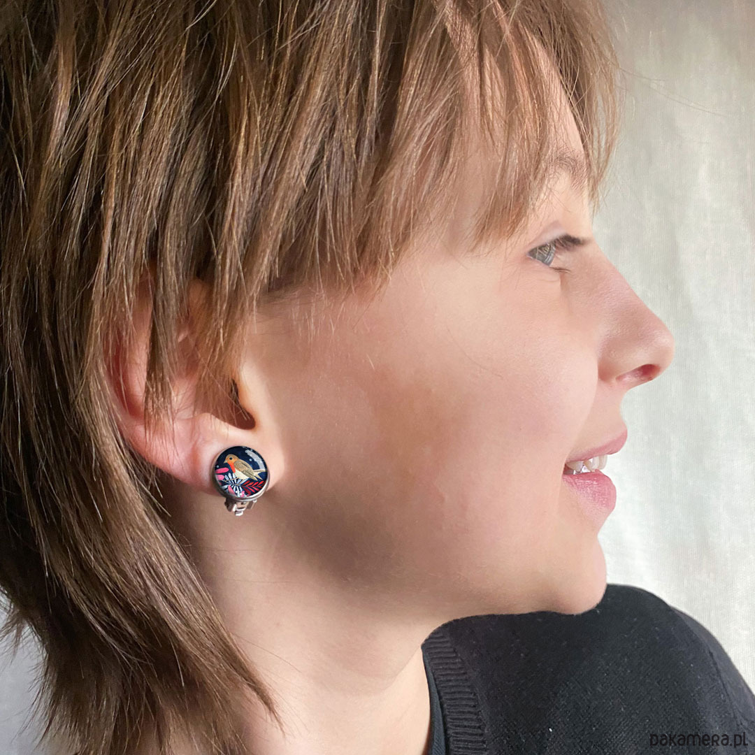 Klipsy z kolorową, autorską ilustracją to biżuteria, która łączy w sobie delikatną formę i wyrazisty wzór. Barwy obrazka są intensywne, dzięki czemu kolczyki przyciągają uwagę i dodają blasku do każdej stylizacji.