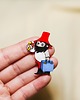 Przypinka ręcznie rysowana, zabezpieczona lakierem ekologicznym. Powierzchnia jest błyszcząca.