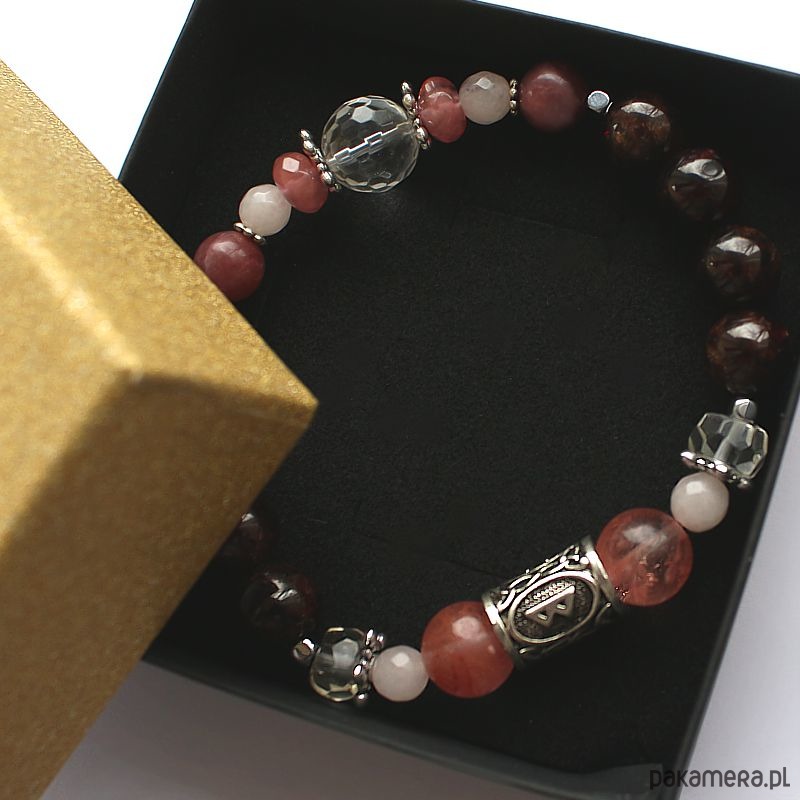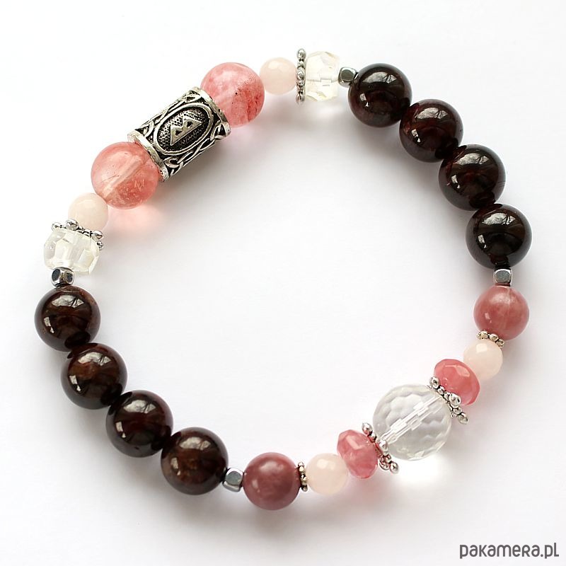 Energetyczna bransoletka ochronna z runą Berkano, granatami, kwarcem różowym, turmalinem arbuzowym, rodonitem i pięknym fasetowanym kryształem górskim.Oczyszczona, zregenerowana, napełniona energią czystego światła o najwyższej wibracji. ❤