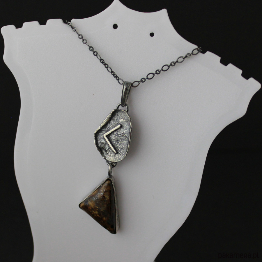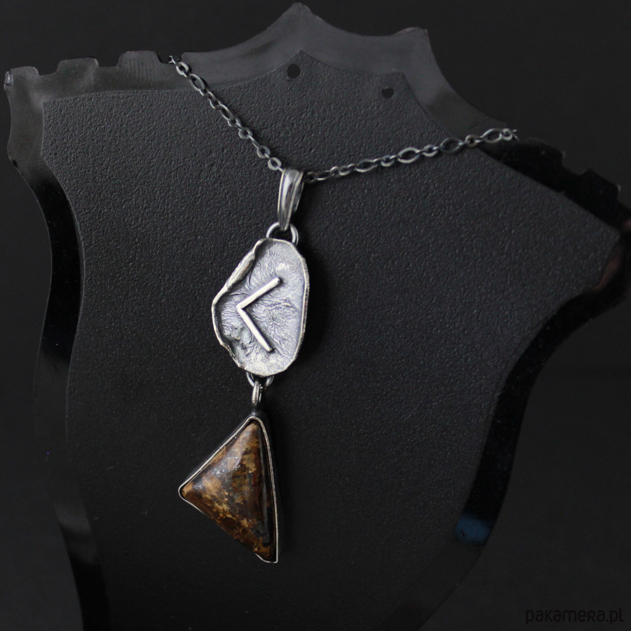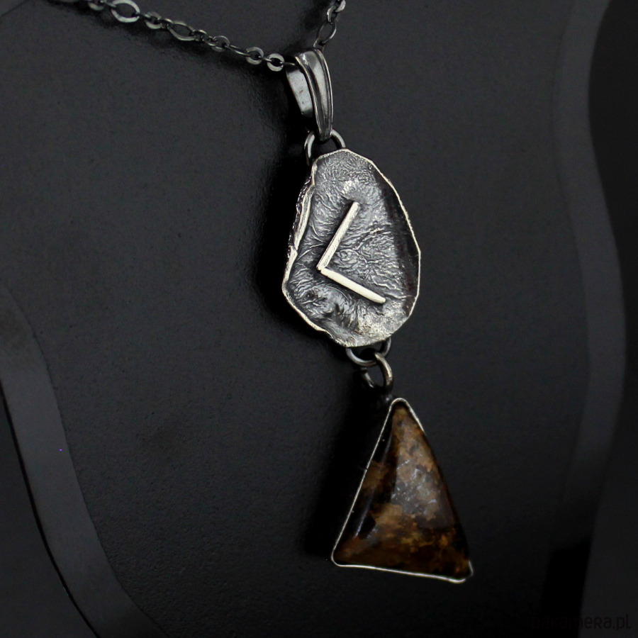 Runa Kenaz / Kaunaz / Cen z bronzytem - oksydowany srebrny naszyjnik