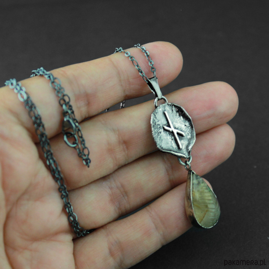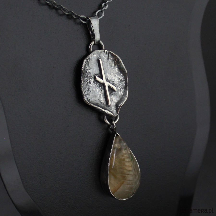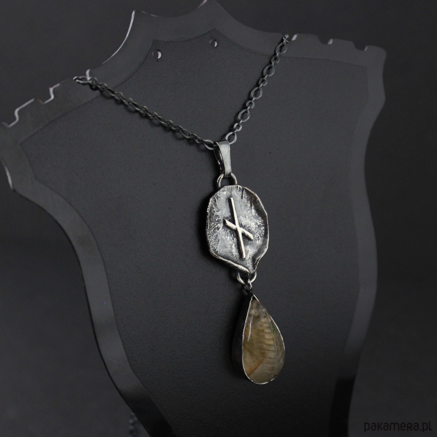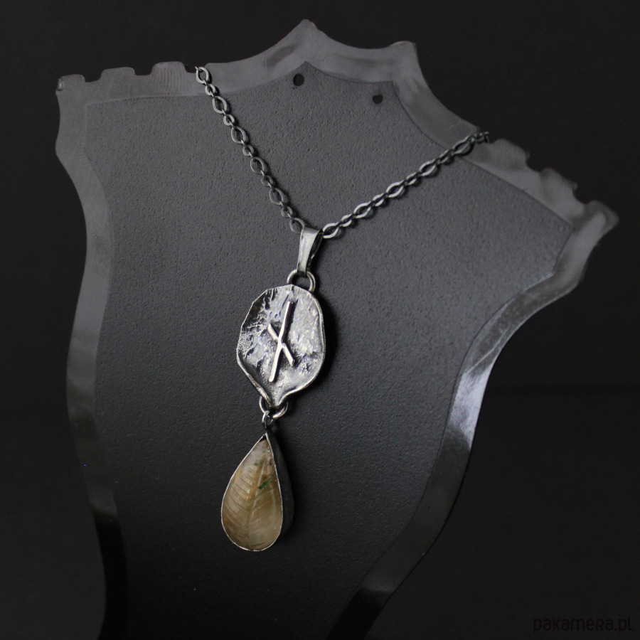 Runa Nauthiz z kwarcem rutylowym - oksydowany srebrny naszyjnik