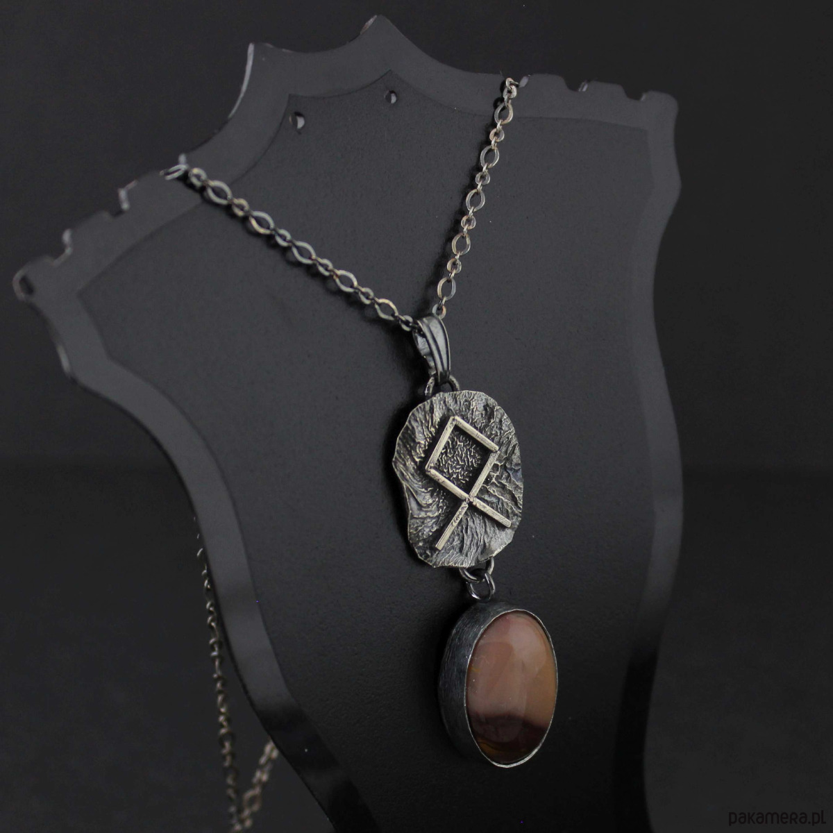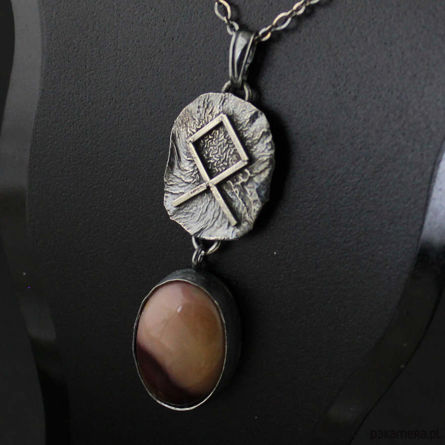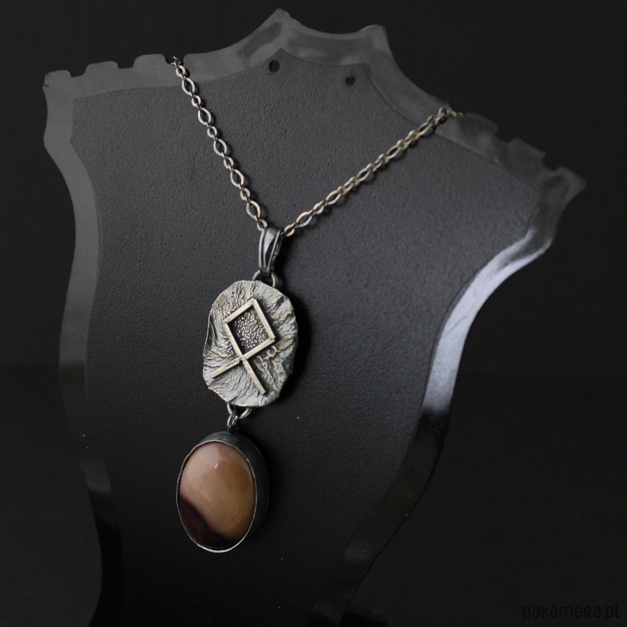 Runa Othala z mokaitem - srebrny amulet ochronny