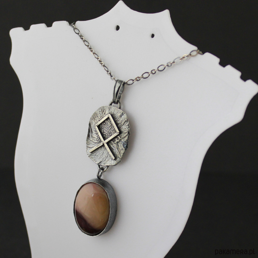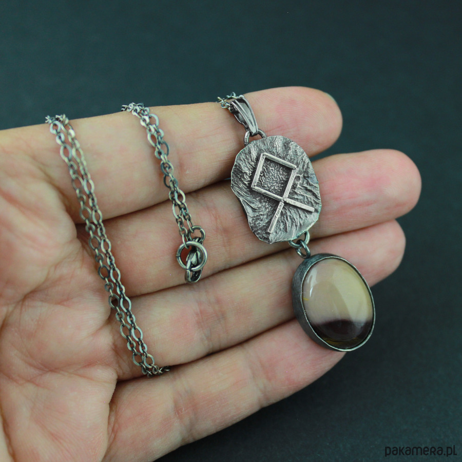Mokait, kamień stabilizacji, pomaga odnaleźć spokój w codzienności, wzmacnia zaufanie do własnych decyzji i uczy harmonii pomiędzy przeszłością a tym, co dopiero nadejdzie. W połączeniu z runą Othala tworzy talizman, który łączy ochronę z poczuciem zakorzenienia – amulet przypominający, że każda droga zaczyna się w sercu.