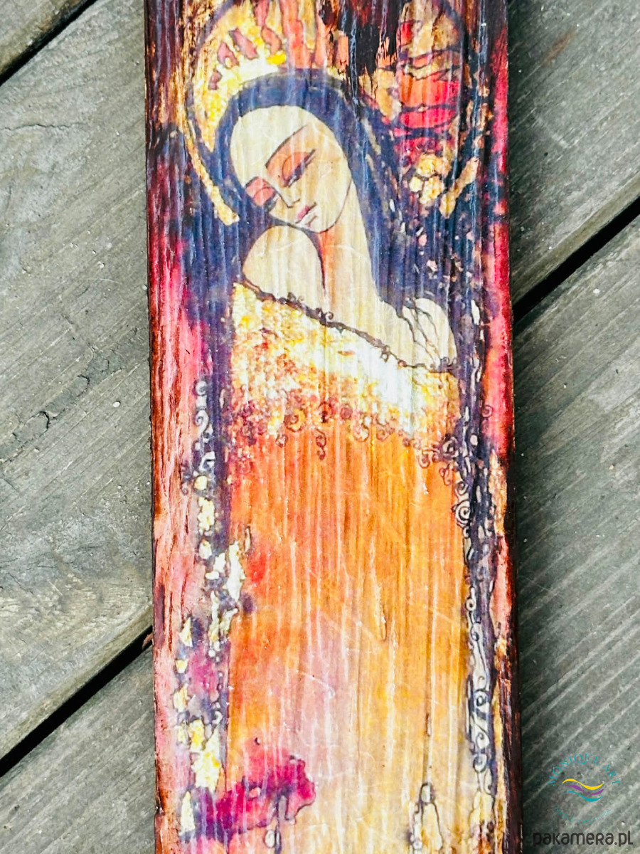 Rustykalna deska z aniołem, prezent, anioł na desce, anioł stróż