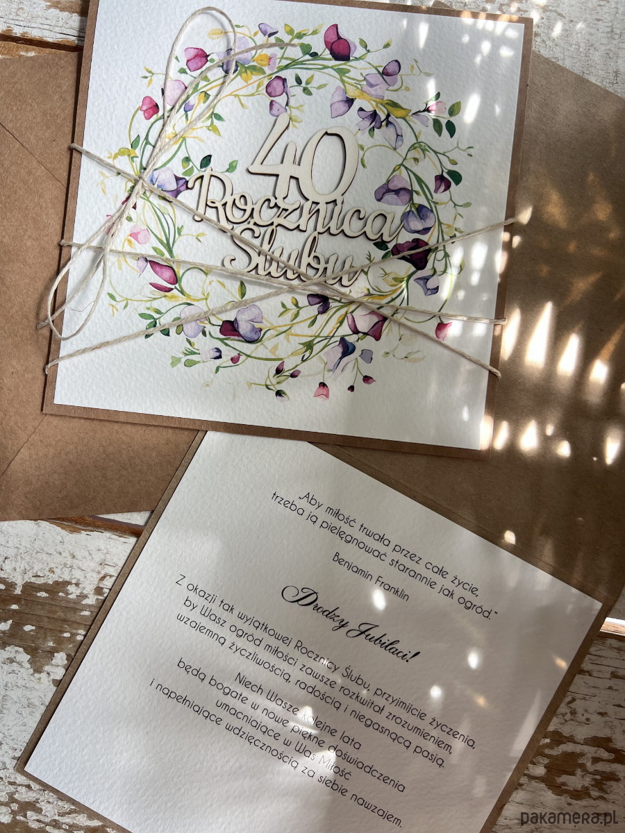 Rustykalna kartka na 40. rocznicę ślubu - czterdziesta rocznica ślubu