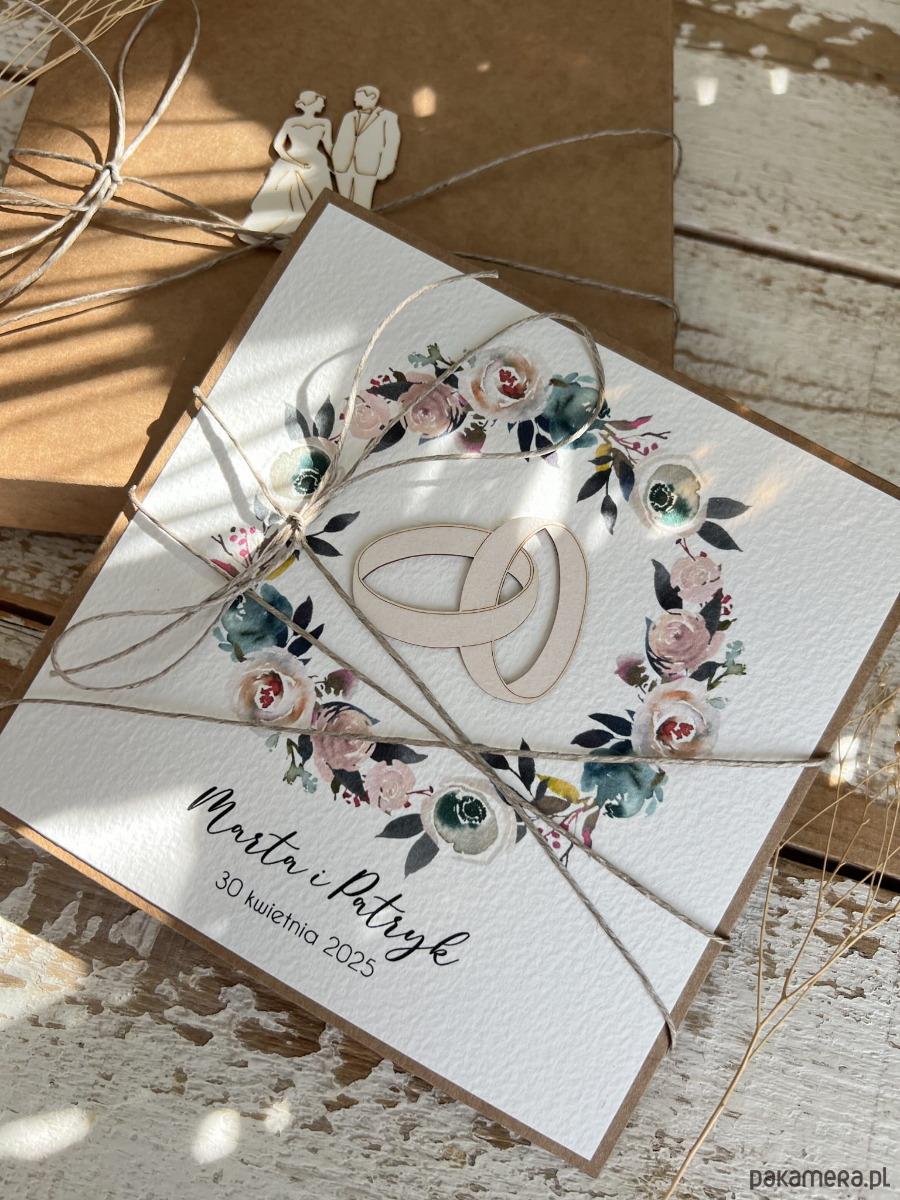 Rustykalna kartka na ślub ręcznie robiona z personalizacją