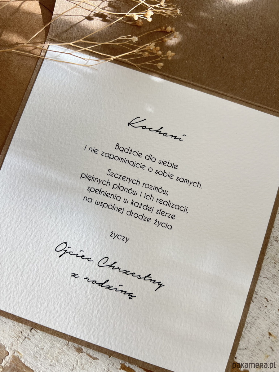 Rustykalna kartka na ślub ręcznie robiona z personalizacją i życzeniami