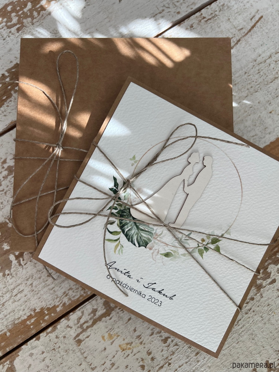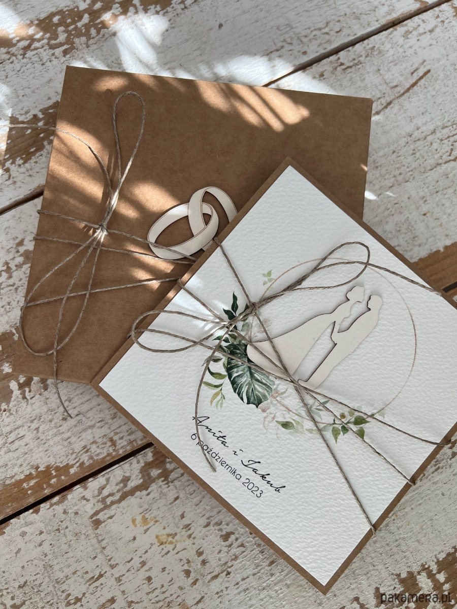 Rustykalna kartka na ślub ręcznie robiona z personalizacją