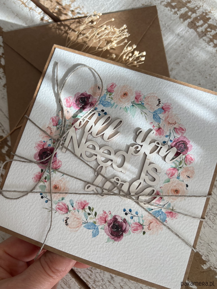 Rustykalna kartka ślubna ręcznie robiona w kopercie - All you feed is love