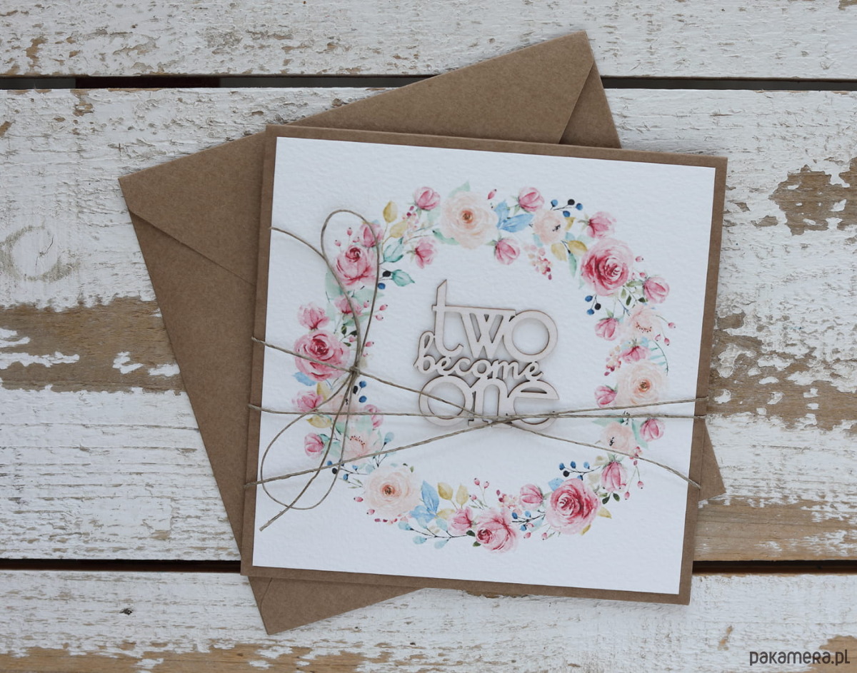 Rustykalna kartka ślubna ręcznie robiona w kopercie