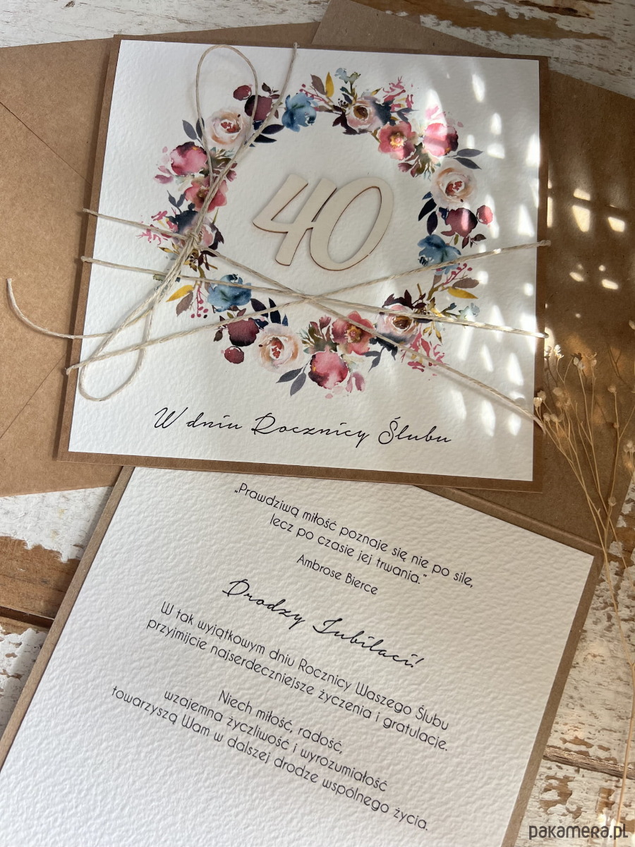 Rustykalna kartka życzenia z okazji 40. rocznicy ślubu