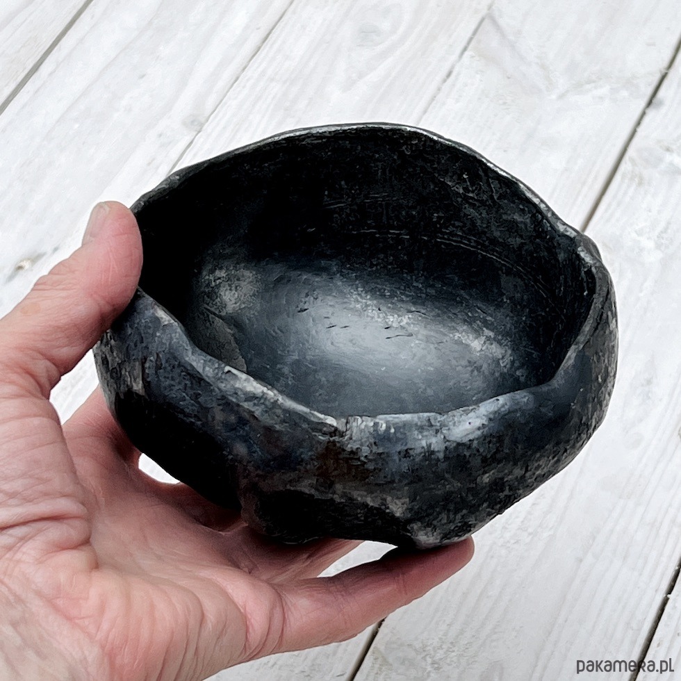 Orientacyjne wymiary: wysokość 8 cm, średnica 13 cm (każda miska jest lepiona indywidualnie i może różnić się od tej na zdjęciu).