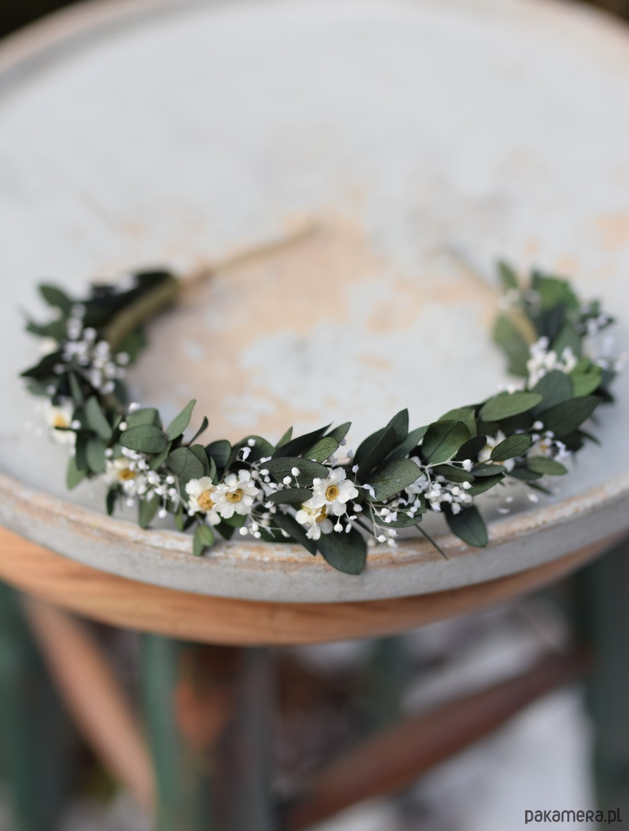 Opaska na głowę z stabilizowanego eukaliptusa i ixodi oraz mini gipsówki