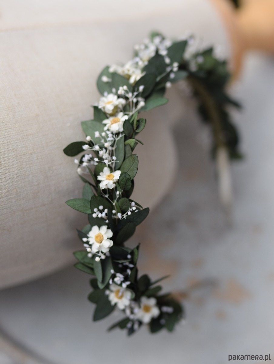 Rustykalna opaska na głowę z suszonych i stabilizowanych kwiatów