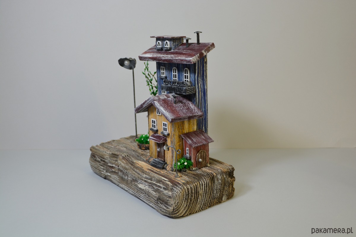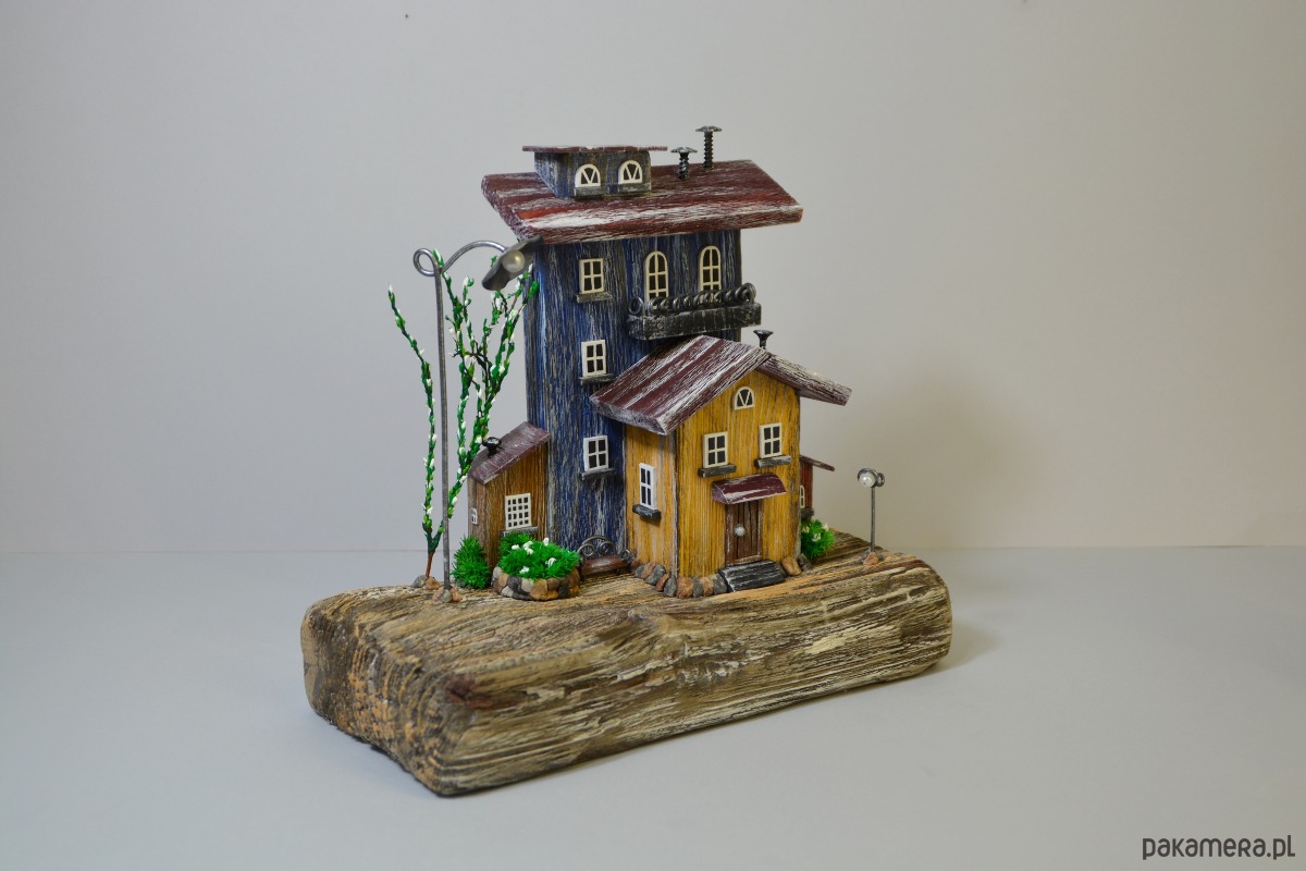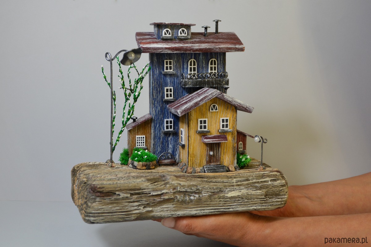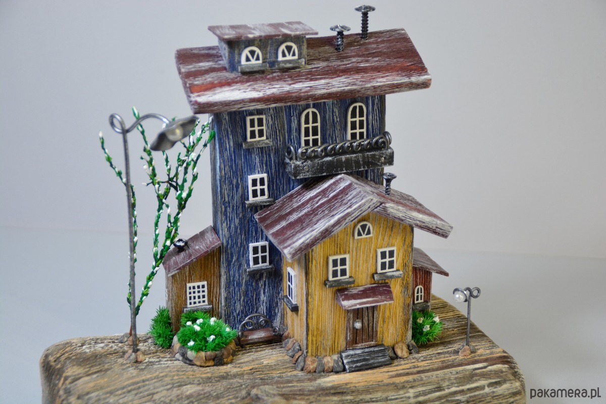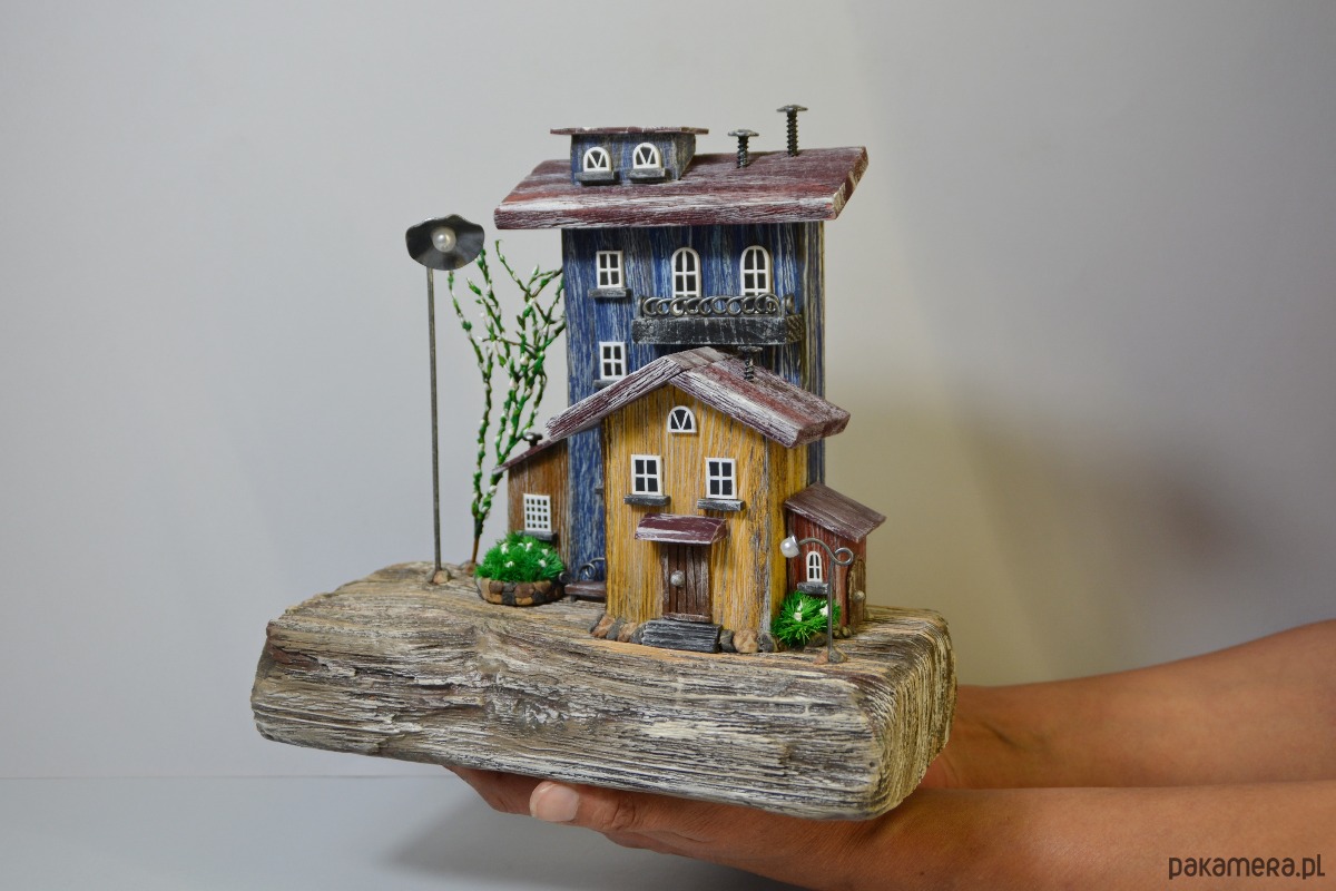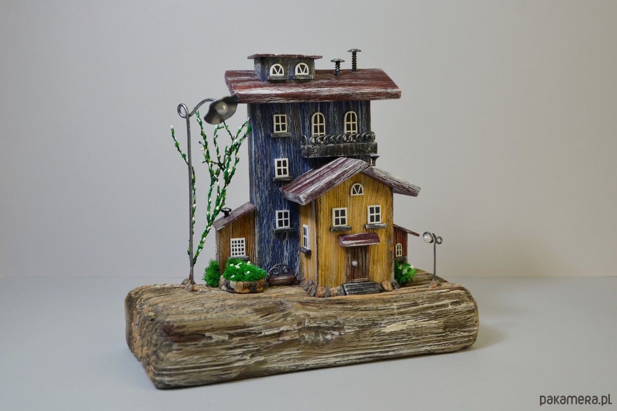Ten drewniany dom będzie pięknym dodatkiem do każdego wnętrza, ogrodu lub patio.