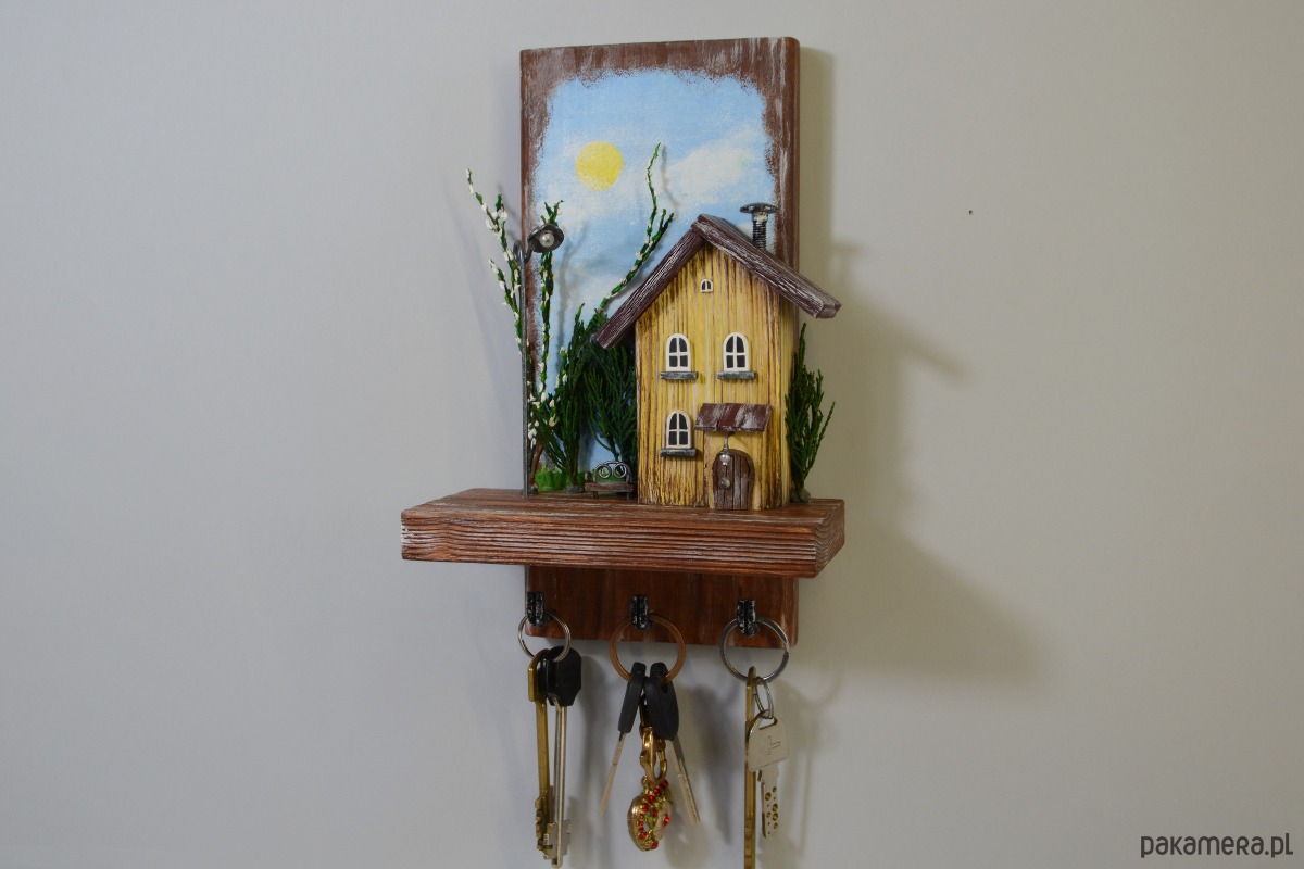 Rustykalny drewniany wieszak na klucze: organizer do przedpokoju