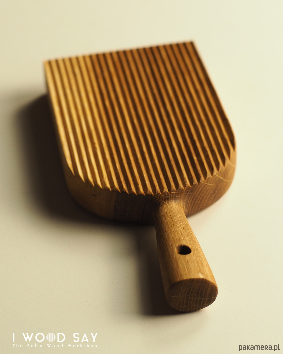 Vintage deseczka do rolowania domowych kluseczek gnocchi. Wykonana z jednego kawałka drewna dębowego.