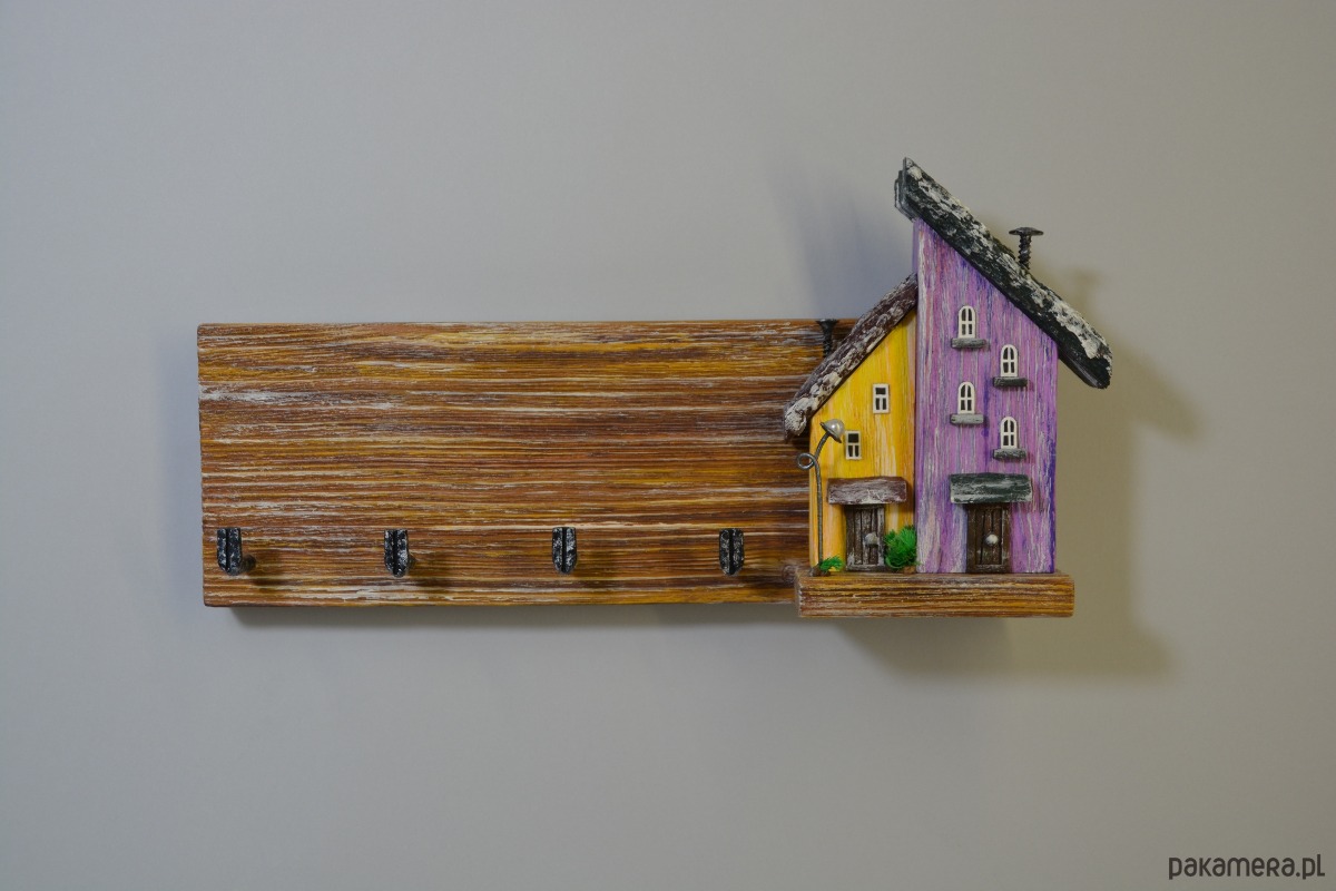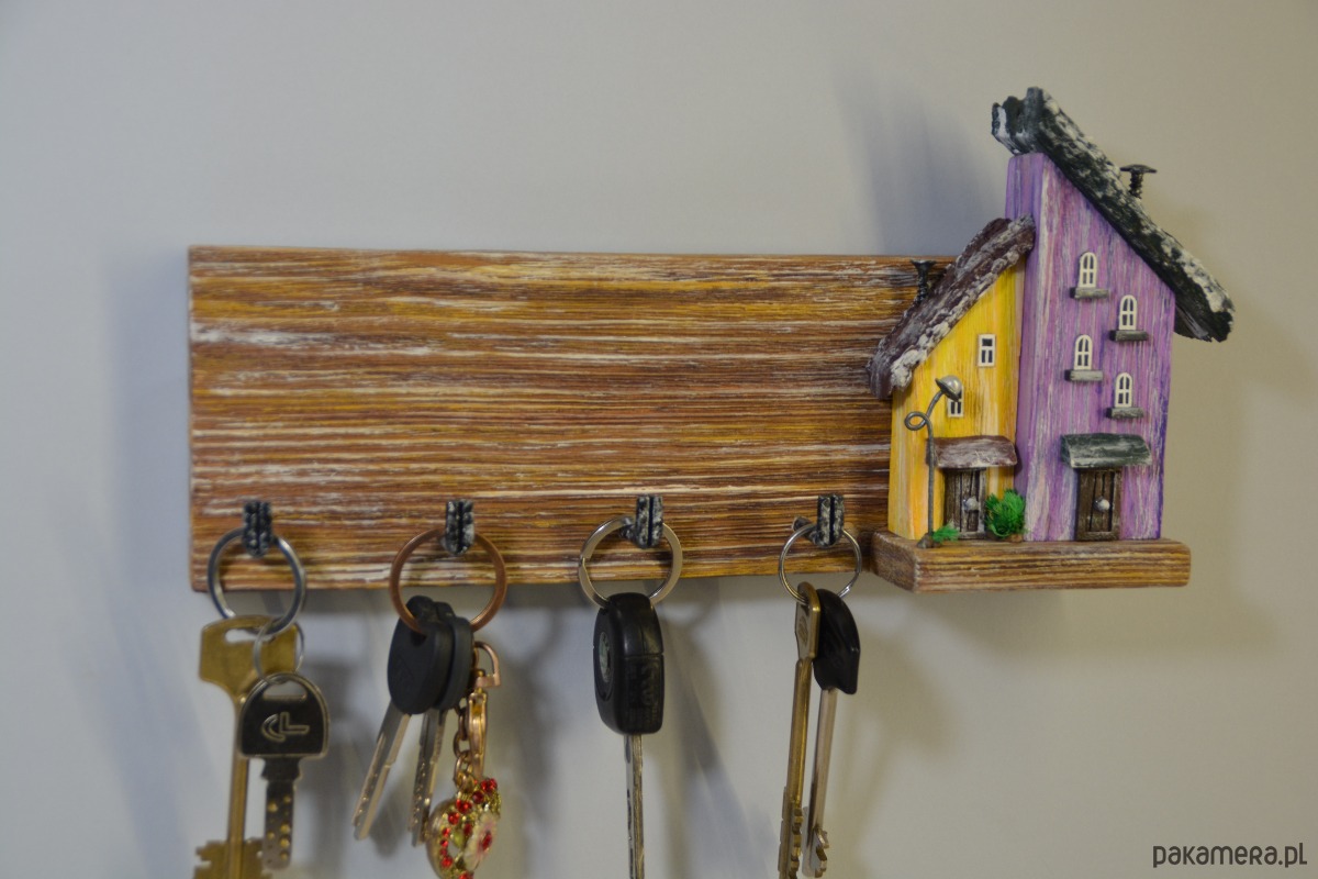 Dodaj przytulnego, naturalnego charakteru swojemu przedpokojowi dzięki temu ręcznie wykonanemu wieszakowi na klucze z drewna odzyskanego. Wieszak posiada 4 solidne metalowe haczyki, idealne na klucze, smycze czy drobne akcesoria.