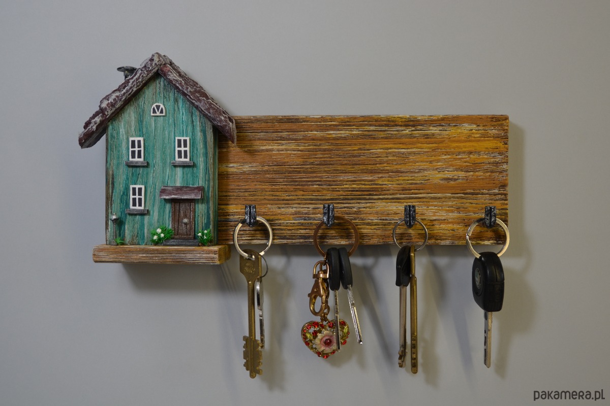 Dodaj przytulnego, naturalnego charakteru swojemu przedpokojowi dzięki temu ręcznie wykonanemu wieszakowi na klucze z drewna odzyskanego. Wieszak posiada 4 solidne metalowe haczyki, idealne na klucze, smycze czy drobne akcesoria.