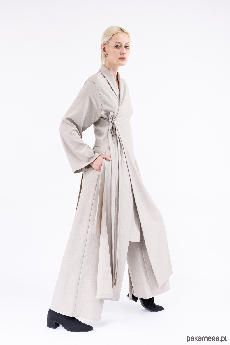 spodnie idealnę w zestawieniu z długim, asymetrycznym płaszczem,