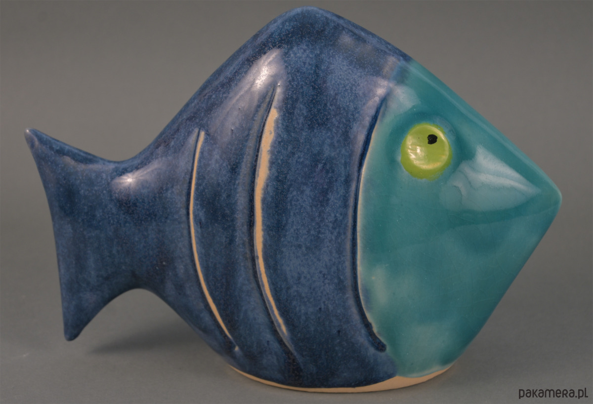 ryba ceramiczna w kolorystyce akwamaryna, wysokość 16,0 cm