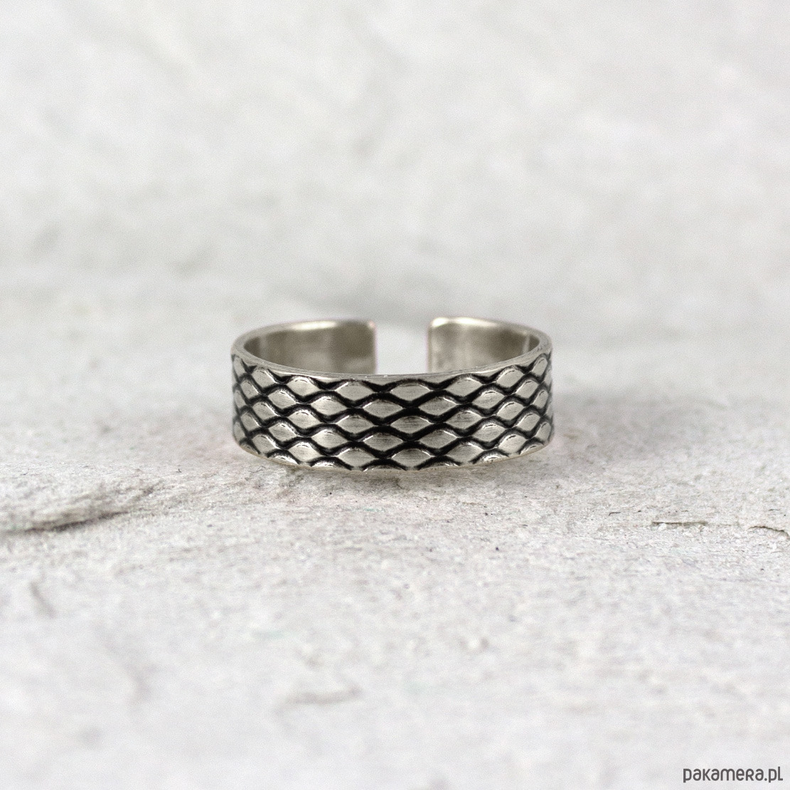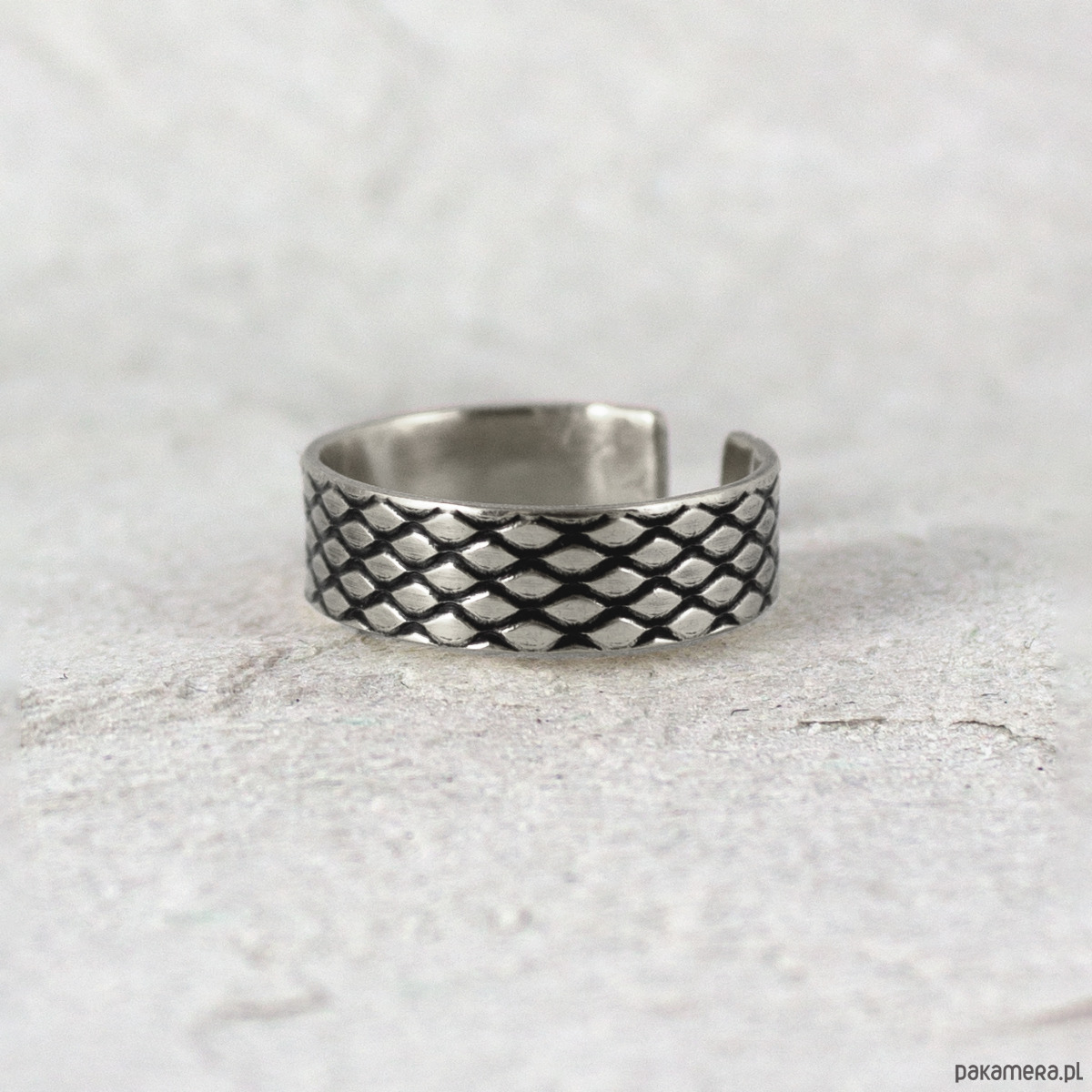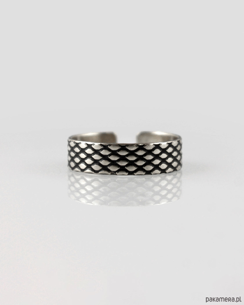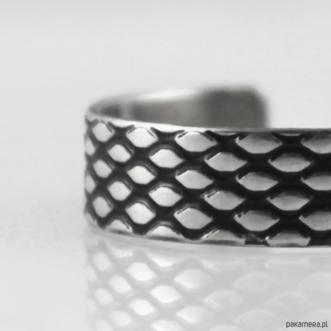 Pierścionek został wykonany ze srebra próby 925, jego szerokość to ok 0,5 cm.