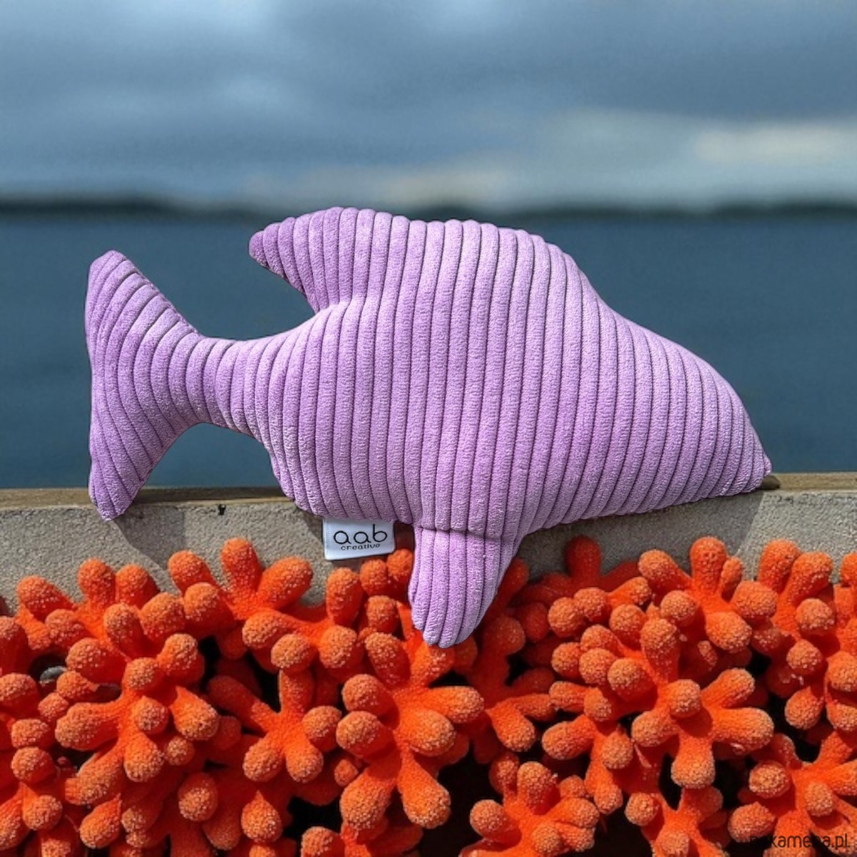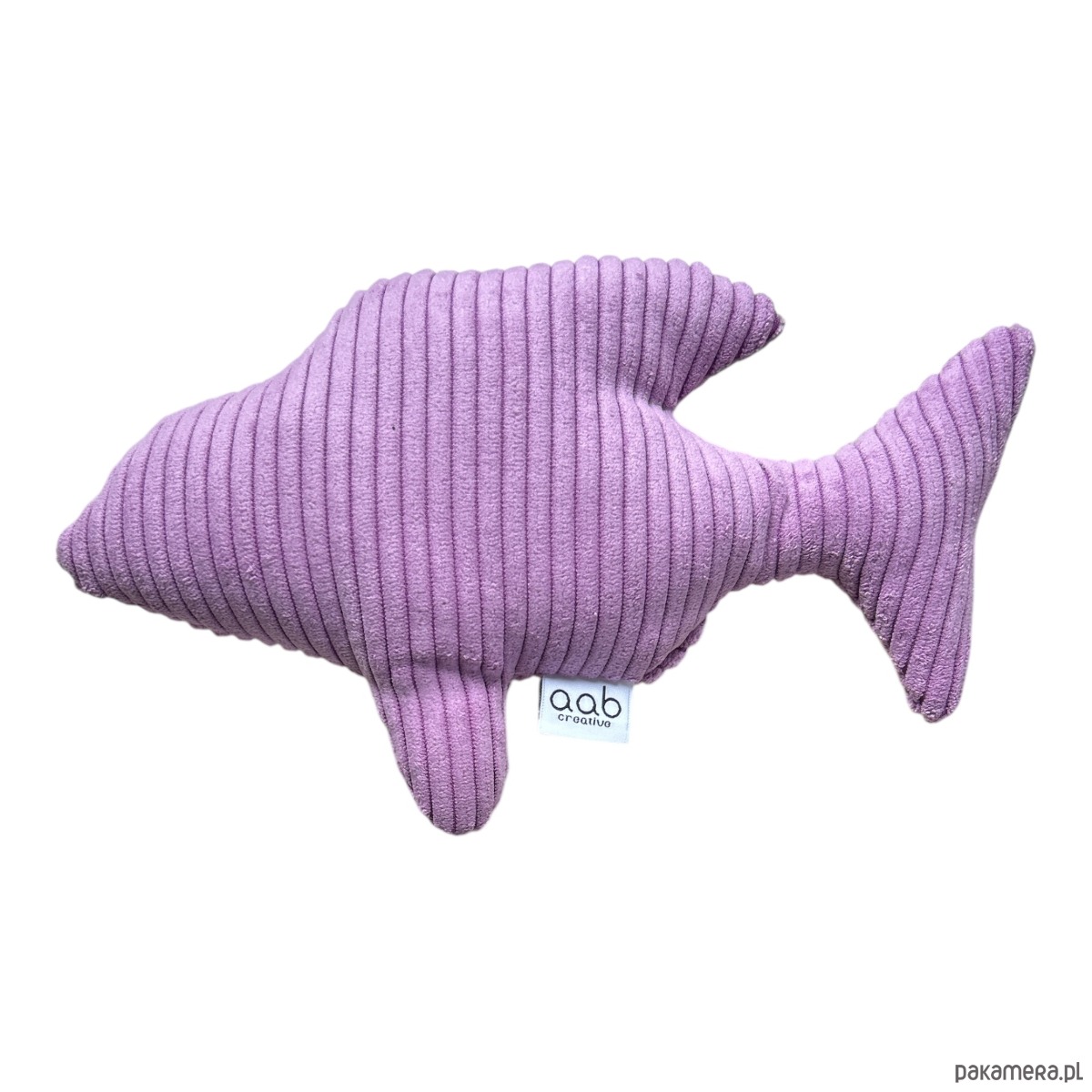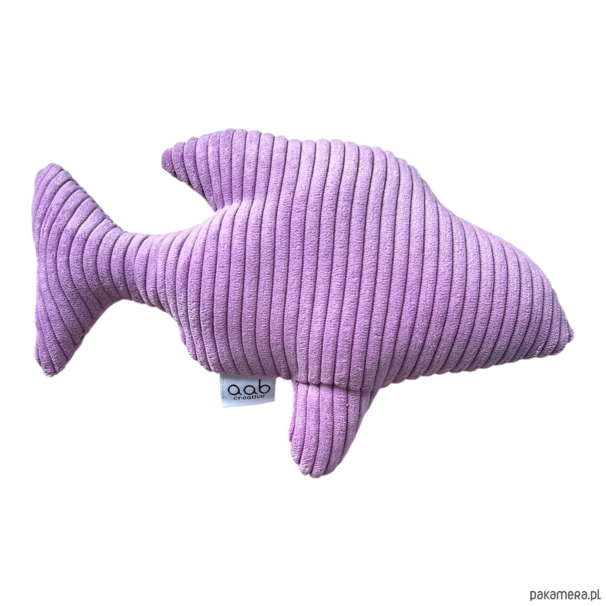 Wyjątkowa, ręcznie szyta poduszka w kształcie rybki, wykonana z miłego w dotyku, prążkowanego sztruksu. Świetnie sprawdza się jako zabawka dla pupila (pies/kot), element sensoryczny lub dekoracyjna poducha.
