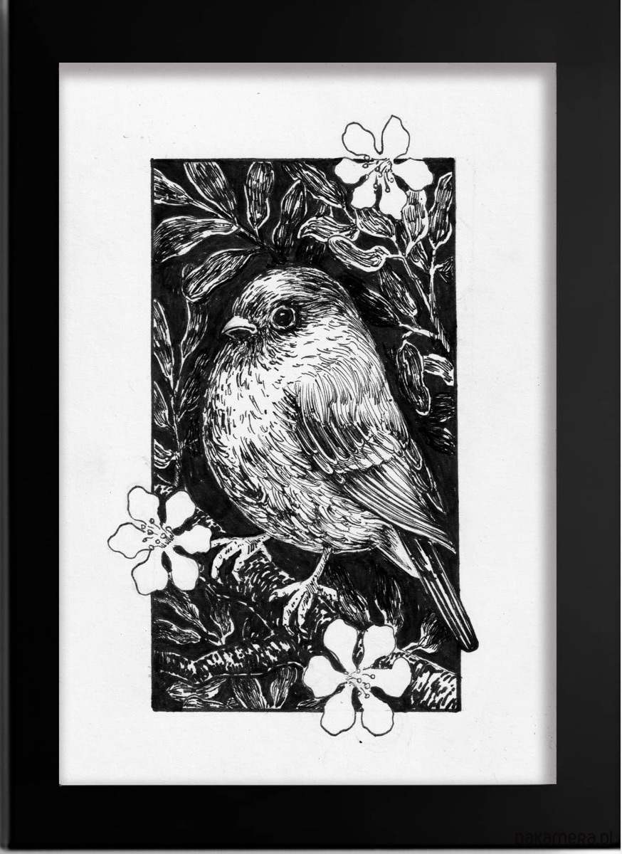 Oryginalny rysunek cienkopisem, o wymiar 10 x 15 cm sprzedawany razem z ramą