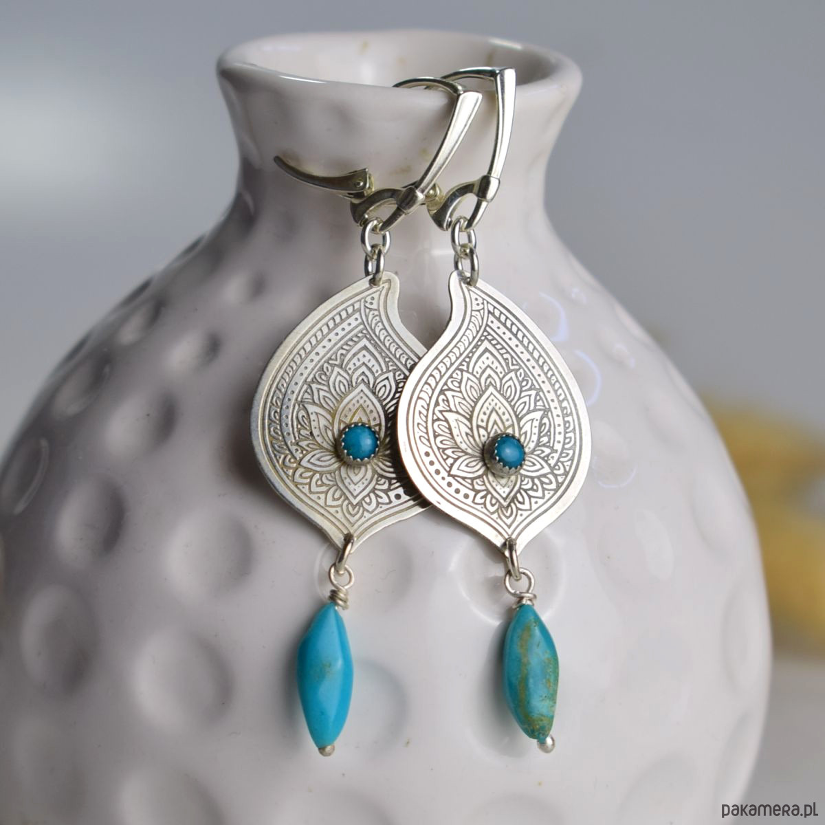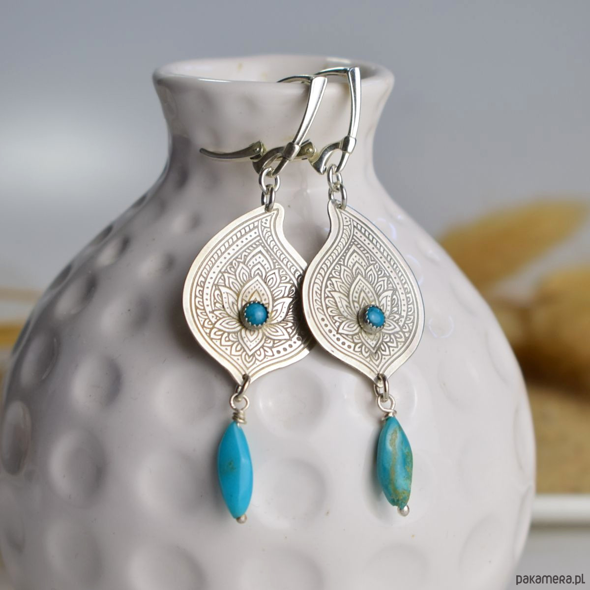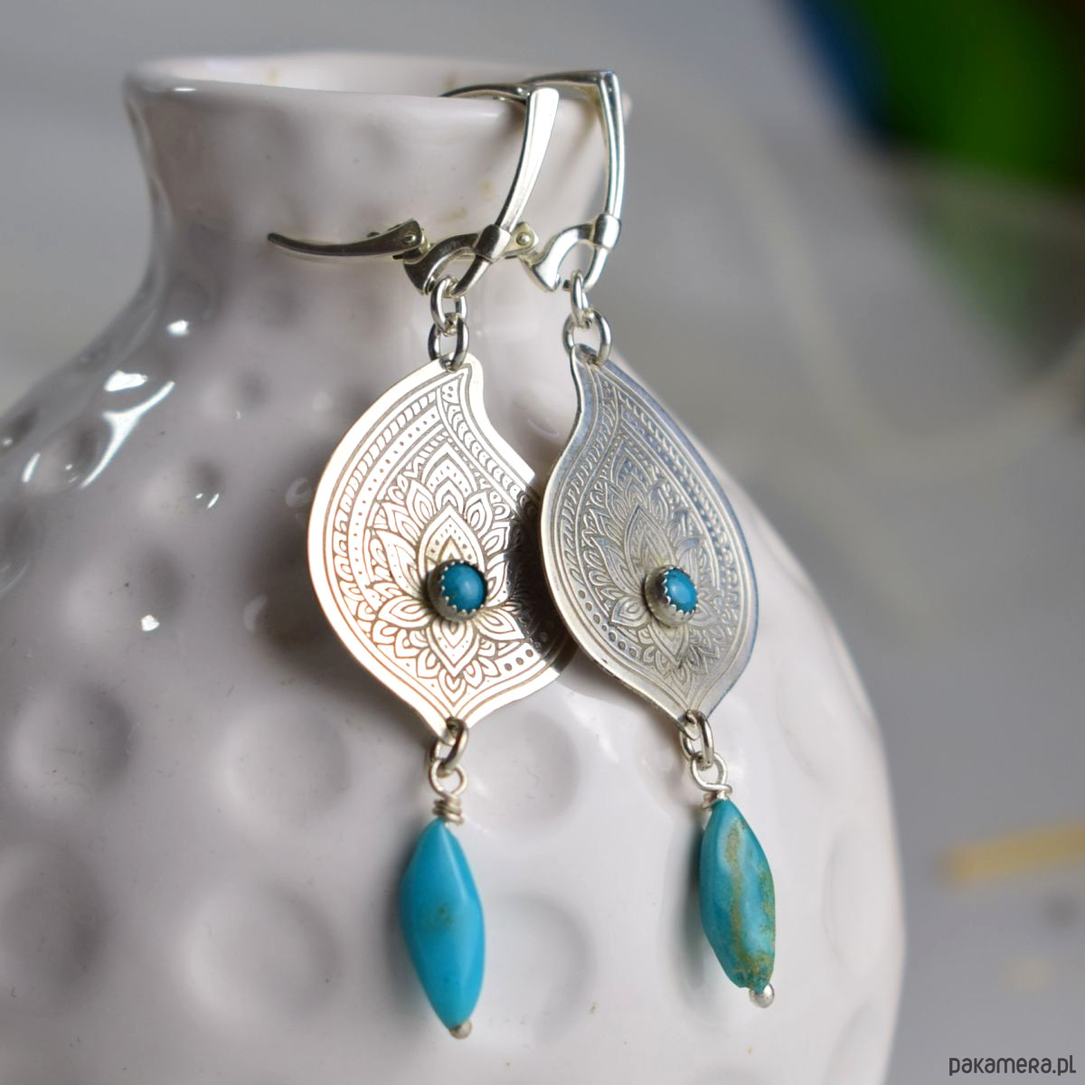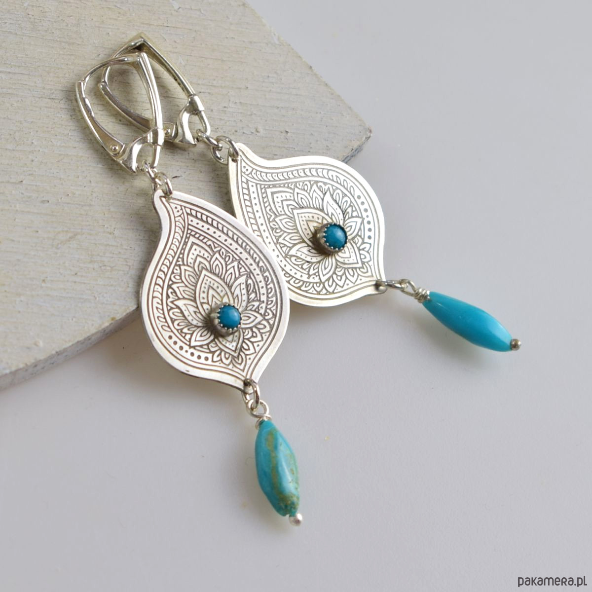 Rysunki na srebrze - srebrne kolczyki z turkusem