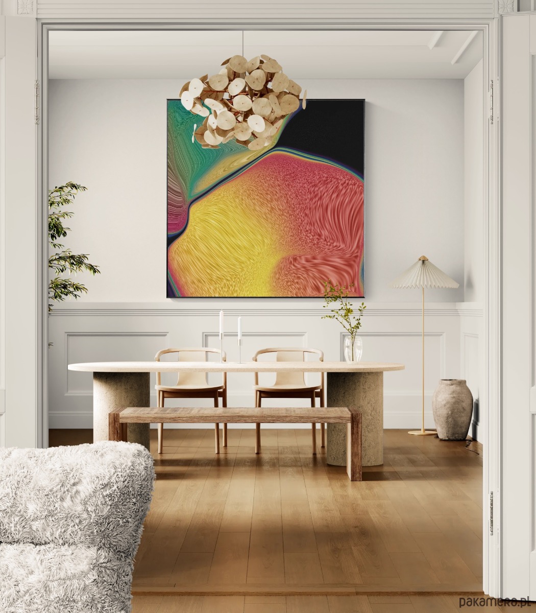 Autorski nietuzinkowy obraz graficzny z kolekcji Rythm of Stillness, o wymiarach 50x50cm.