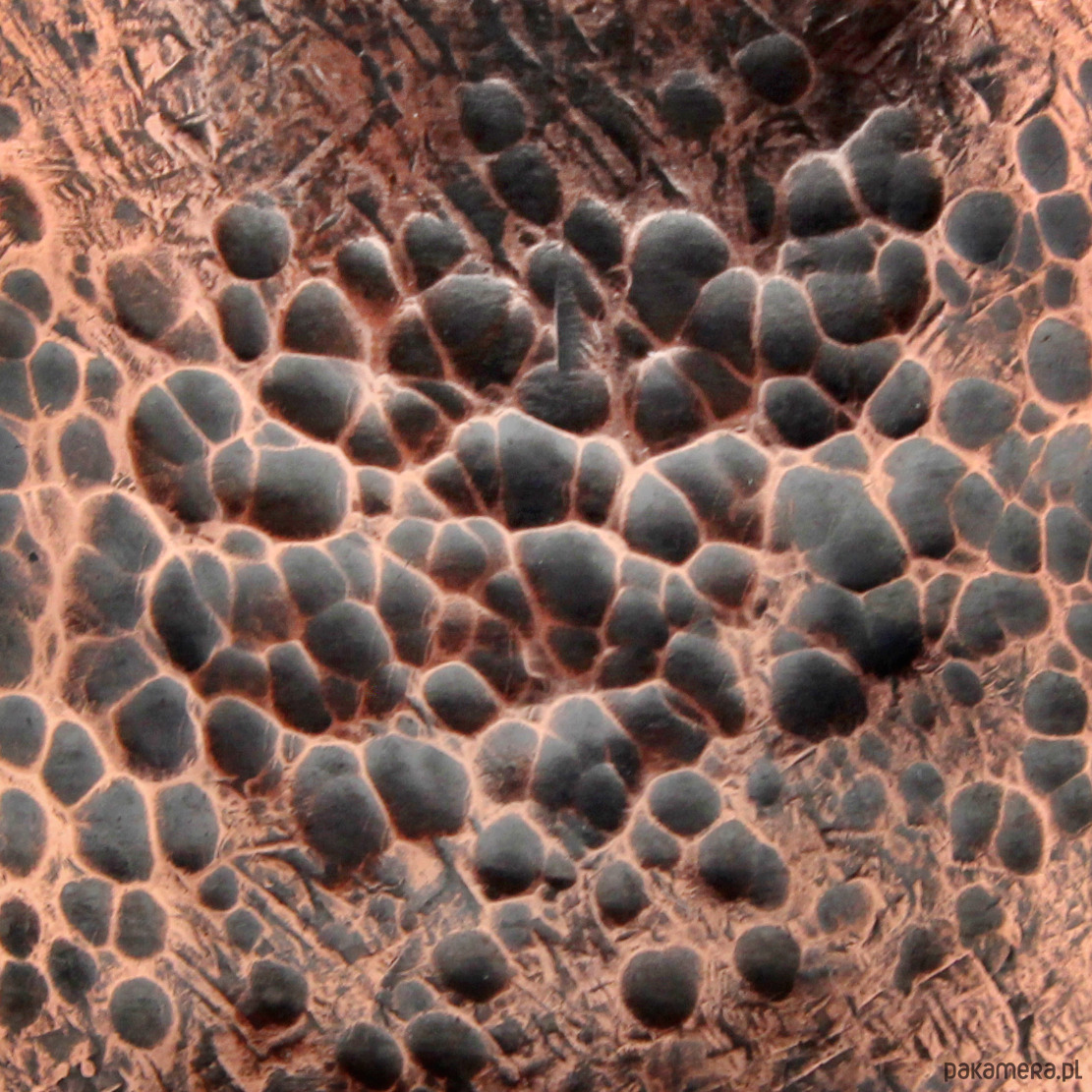Wzór jest lekko podkreślony ciemną patyną uzyskaną w procesie oksydacji (bez użycia sztucznych barwników). Nieznaczne ciemnienie metalu na skutek użytkowania jest procesem naturalnym (należy unikać długotrwałego kontaktu bransolety z wilgocią).