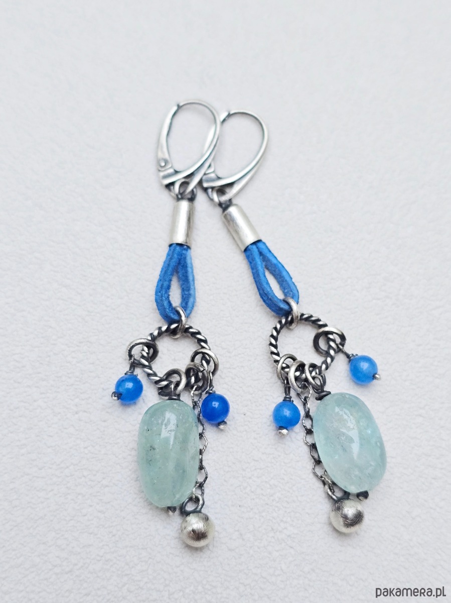 Wykorzystane kamienie: bryłki morganitu, jadeit