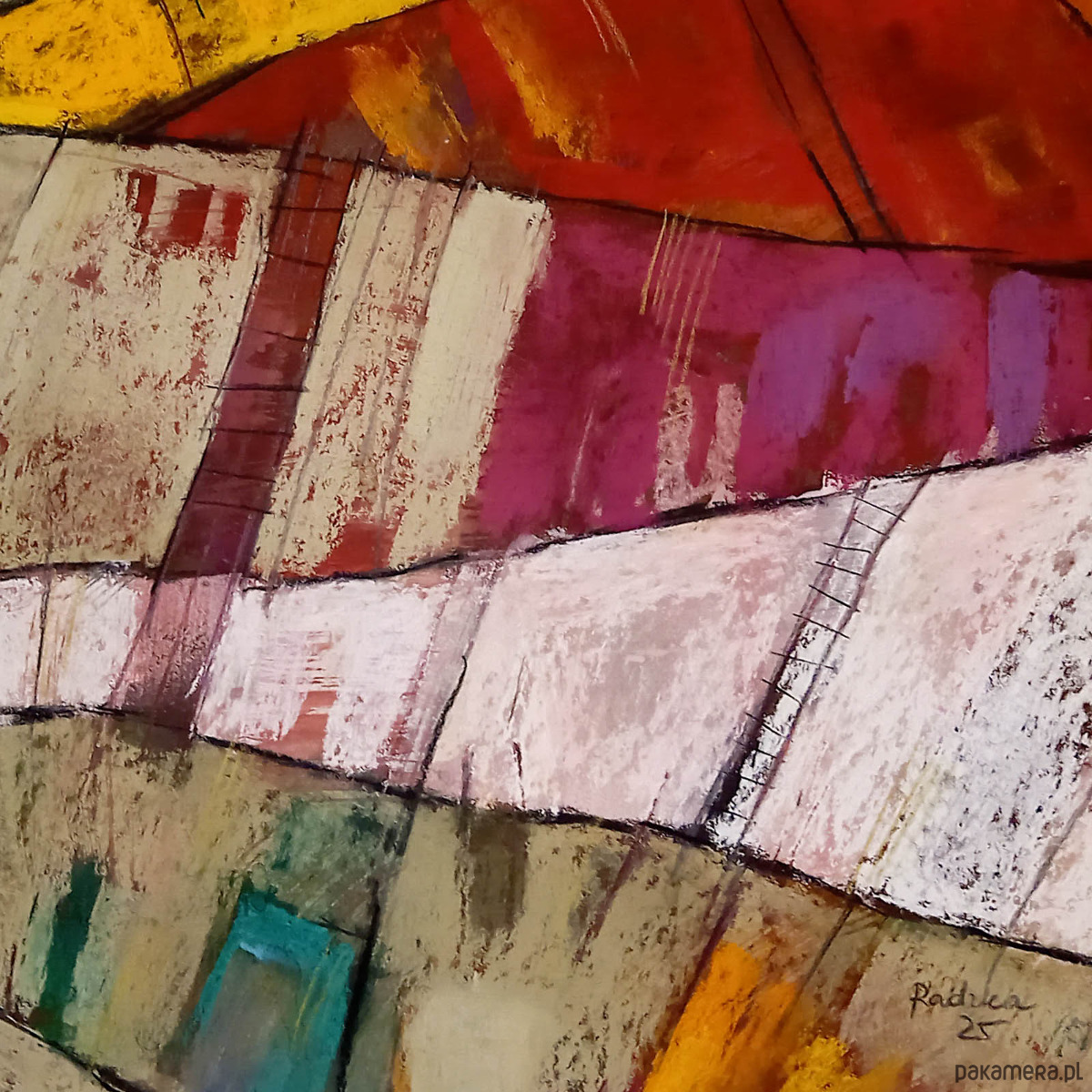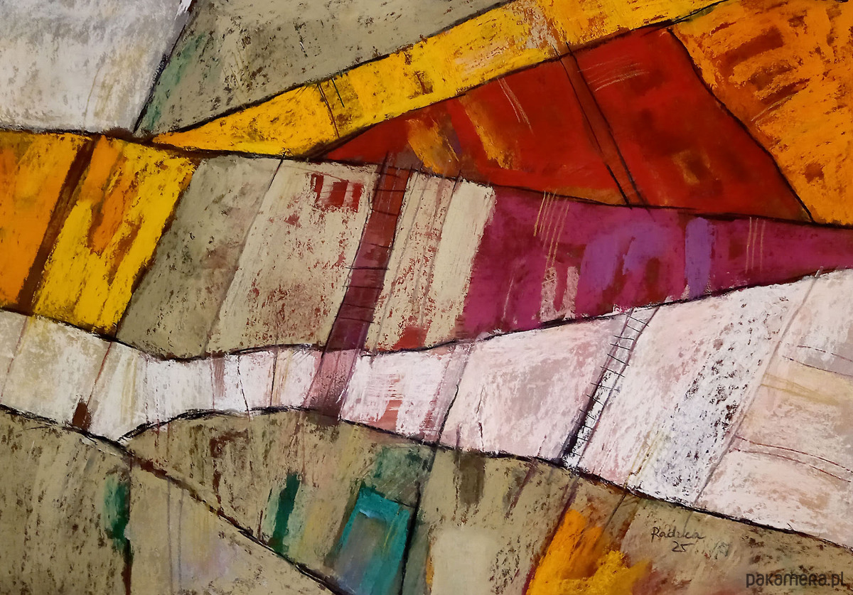 Rysunek wykonany pastelami suchymi, węglem, akrylami i tuszem na brystolu 70x50 cm, zabezpieczony fiksatywą, bez ramy. Na życzenie tworzę symulację kolorystyczną passe partout pasującego do rysunku. Kolory mogą nieznacznie odbiegać od oryginału w zależności od ustawień monitora. Pracę wysyłam w tubie przesyłką priorytetową.