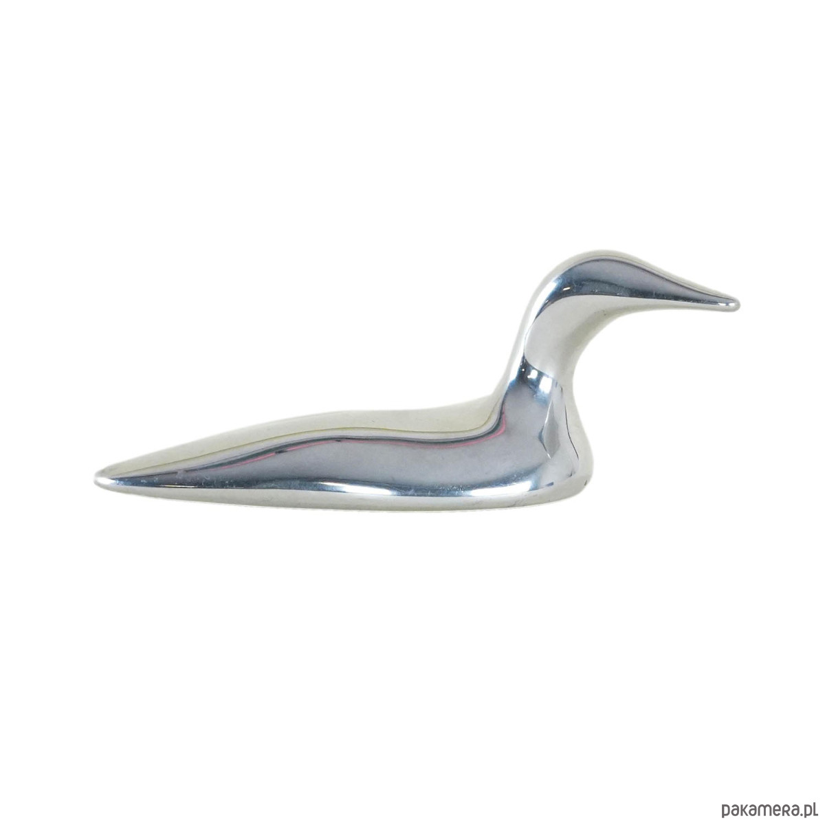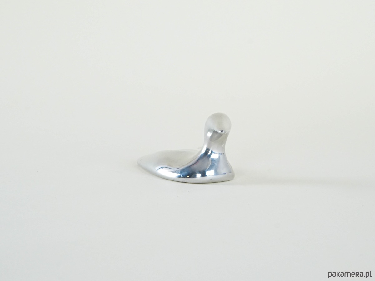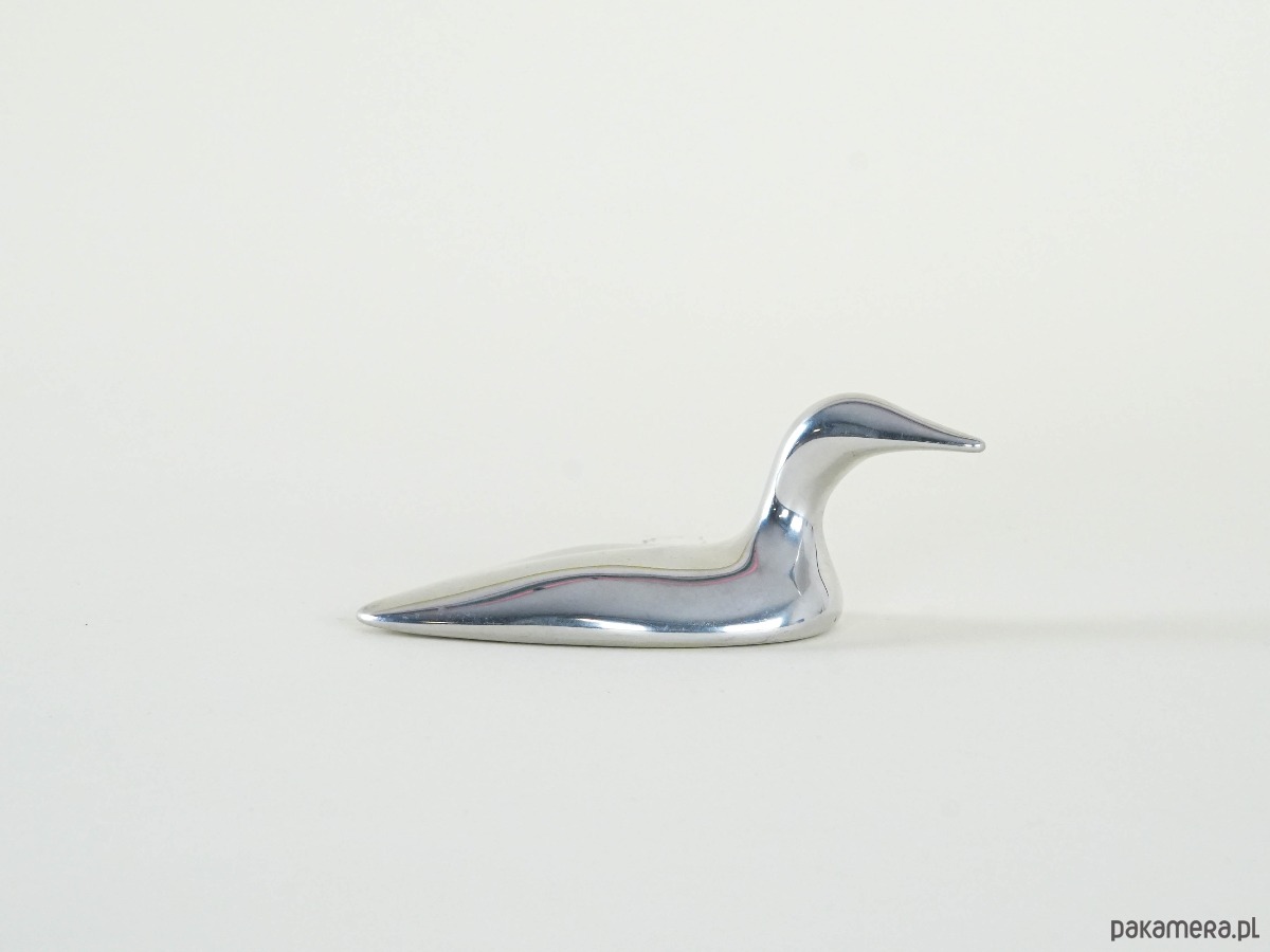 Minimalistyczna rzeźba przedstawiająca kaczkę, wykonana ręcznie w Kanadzie przez Hoselton Sculpture Studio ze stopu aluminium. Charakterystyczny organiczny kształt, gładka, lśniąca powierzchnia i opływowa forma sprawiają, że obiekt wpisuje się idealnie w estetykę mid-century modern. Rzeźby Hoselton są odlewane ręcznie, a następnie polerowane na wysoki połysk – każdy egzemplarz jest unikalny. Piękny akcent dekoracyjny i jednocześnie kolekcjonerski przedmiot, ceniony przez miłośników designu z Ameryki Północnej.