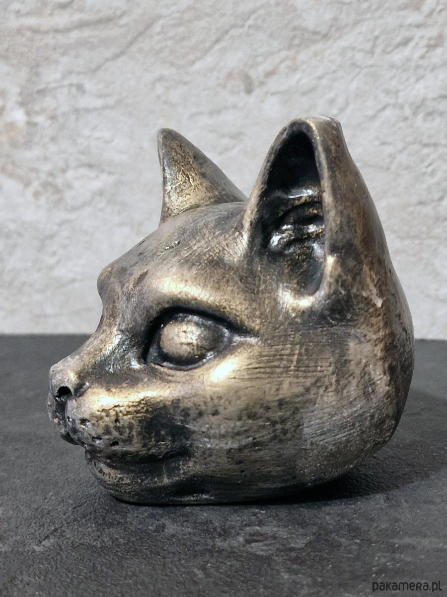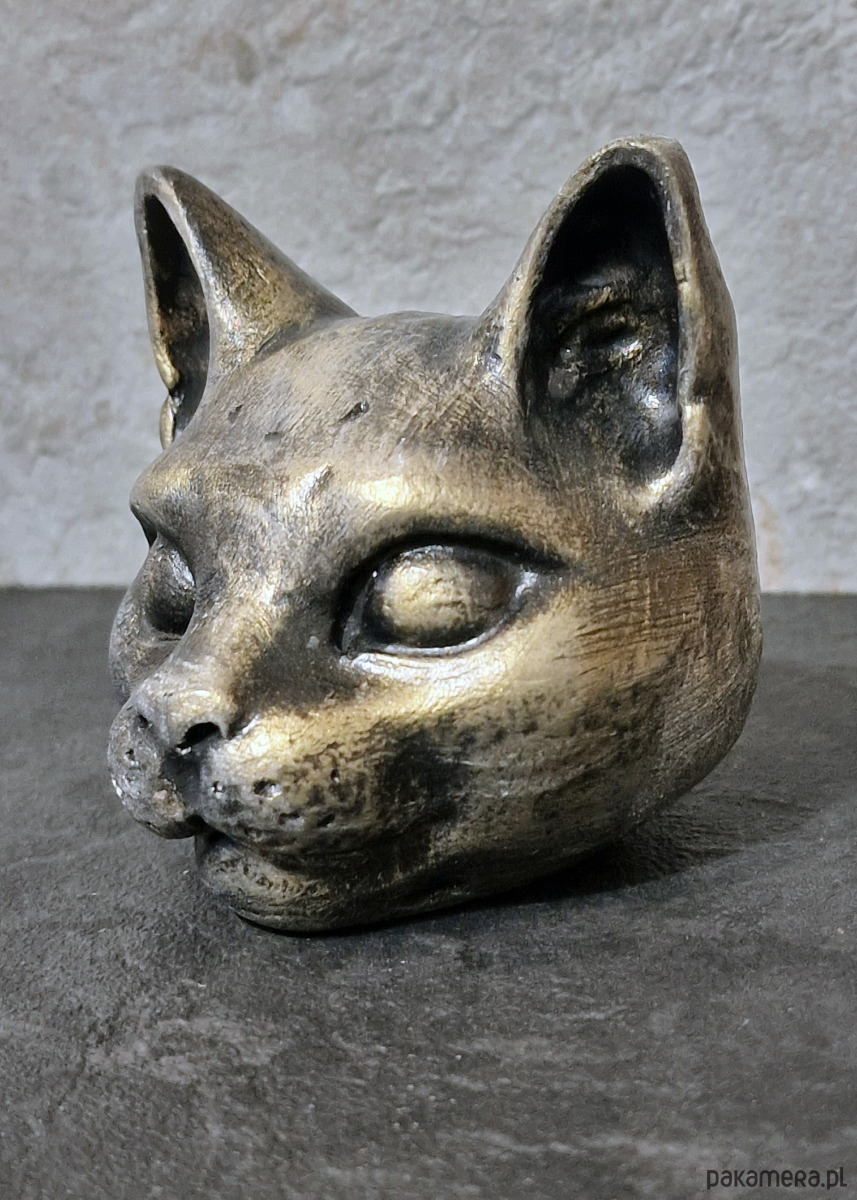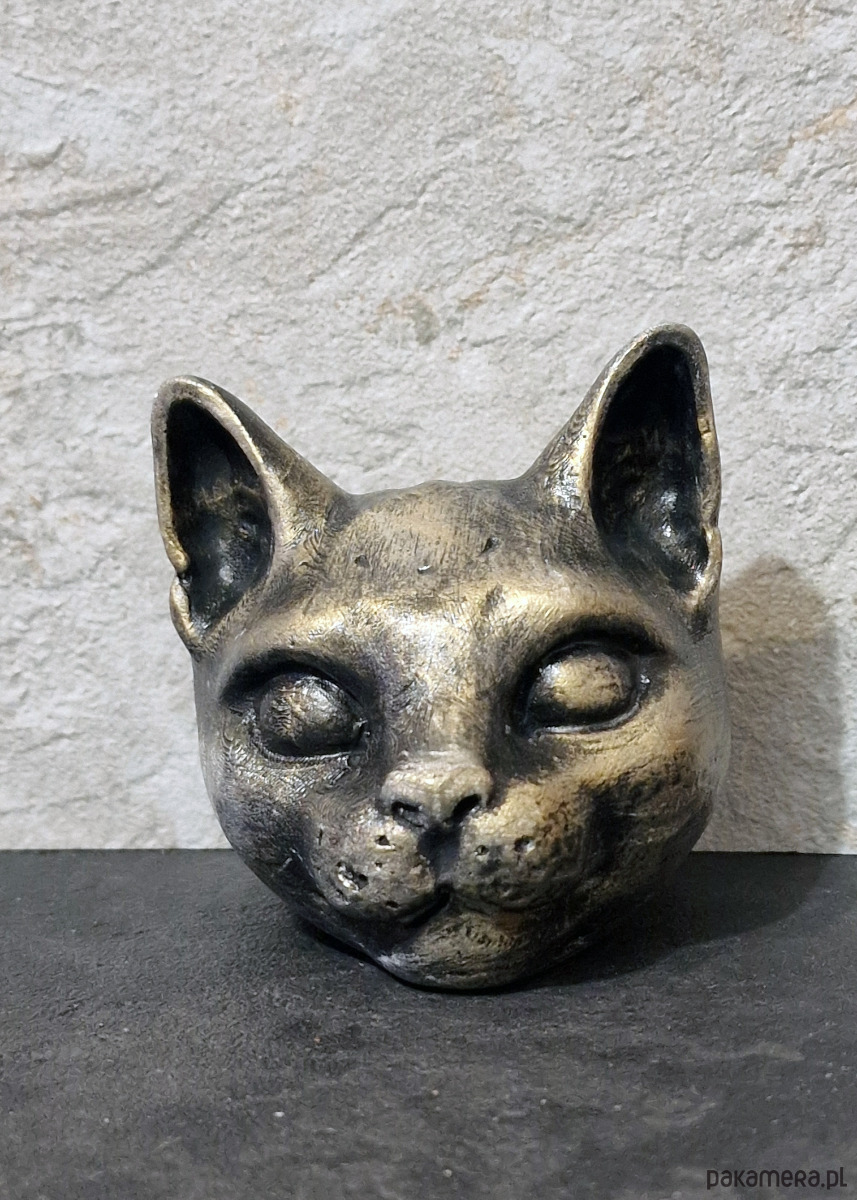 Rzeźba Głowa kota złoty wys. 7,3 cm